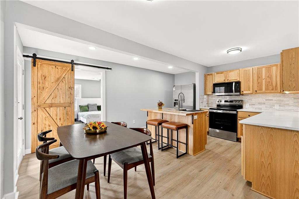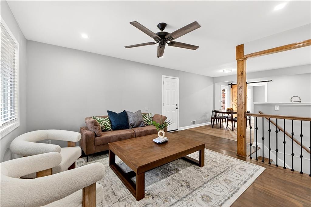 FRESH, MODERN, and made for living well. This fully updated reverse ranch checks ALL the boxes—and then some. With 5 true bedrooms plus a 6th non-conforming bedroom, there’s room for everyone to spread out, settle in, and stay awhile. Step inside to an open-concept main level designed for connection, comfort, and unforgettable gatherings. The kitchen shines with brand-new custom cabinetry and a statement island—your hub for holiday baking, Sunday brunch, or midnight snacks. The dining and living flow seamlessly, creating a welcoming space framed by warm finishes and natural light. Step out to enjoy peaceful moments overlooking the backyard from the new elevated deck. Just off the kitchen, retreat to your private primary suite—tucked away from the rest of the home for total tranquility. Cozy up by your fireplace, and unwind in the new spa-style en suite with stylish tile surround. The main level continues with three additional spacious bedrooms and a beautifully updated full bath. Head downstairs to discover even more living space—a dedicated media area for movie nights, a large bedroom, a full bathroom and an additional expansive family room with abundant natural light that could be used as a bonus non-conforming bedroom perfect for guests or even enough space for a home studio, the possibilities are endless! This room also walks out to a covered patio with recessed lighting, offering your own secluded outdoor hangout for breezy evenings and backyard lounging. With thoughtful updates, flexible living spaces, and plenty of room to live, work, and play, this home delivers modern comfort and effortless versatility for every lifestyle while offering privacy for the whole family! With remarkably quick access to highways in a convenient location next to the heart of Kansas City's sport action, you won't want to let this one get away! This home looks even better in person! Schedule a showing today!