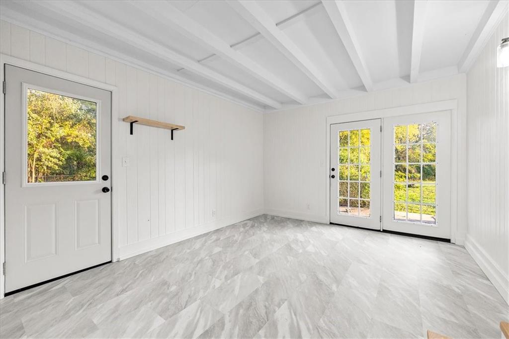 This beautifully updated ranch blends modern style with everyday comfort. The bright kitchen features white shaker cabinets, butcher-block counters, subway tile backsplash, and black fixtures—all complemented by upgraded water lines for long-term peace of mind. Enjoy an open, airy layout with refinished hardwood floors, new lighting, and fresh paint throughout. Both bathrooms are completely redone—one with elegant gold finishes, the other in sleek matte black. Outside, you’ll love the home’s fresh exterior, yellow front door, and spacious yard. With updated plumbing, and a one-level layout, this home is move-in ready and full of charm.