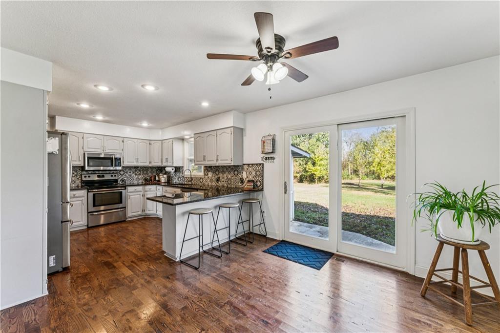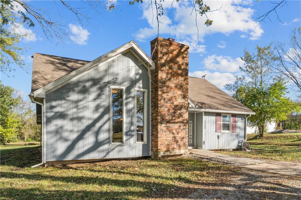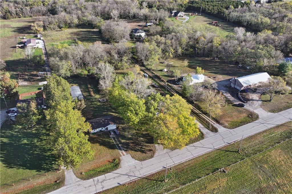 Amazing MOVE in ready acreage home!! You can not find a home in Johnson County on almost 5 acres at this SMOKING HOT price. This home features a Main Floor Primary Suite and Main floor Laundry!! True one floor living if needed. Home was remodeled a couple years ago and its amazing!! Family room has beautiful fireplace, Vaulted ceilings and beautiful hardwood floors. Formal Dining room open to family room area its HUGE for all your family dinners. Kitchen is perfect for all your entertaining needs, granite, tons of cabinets, Large eat in area also! Upstairs features 2 HUGE bedrooms and full bath. Both bedrooms have MASSIVE walk in closets. Back of the house has a large covered/screened patio that wraps around the home. Outbuilding has enough room to park 3 cars or tons of space for all your projects. Acreage has lots of trees and Openings thru out. Country living is ready for you!