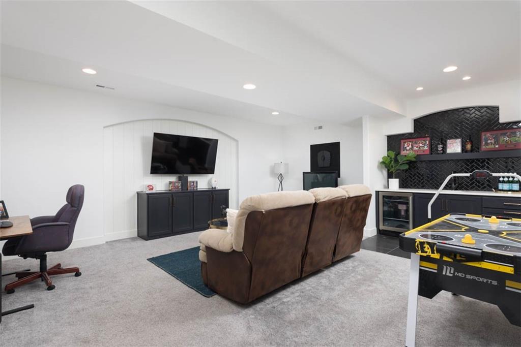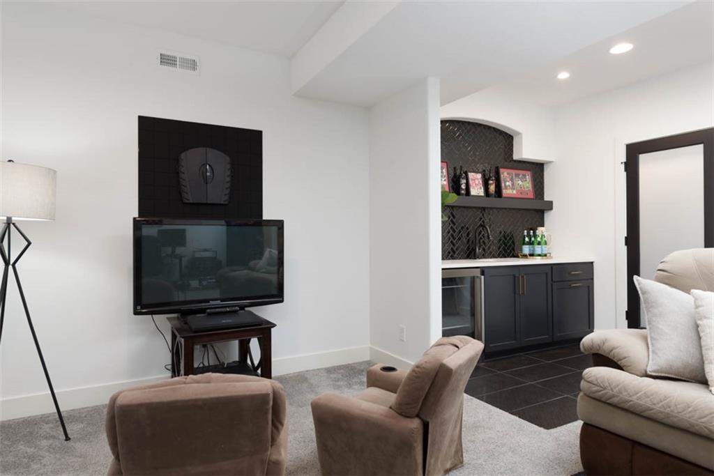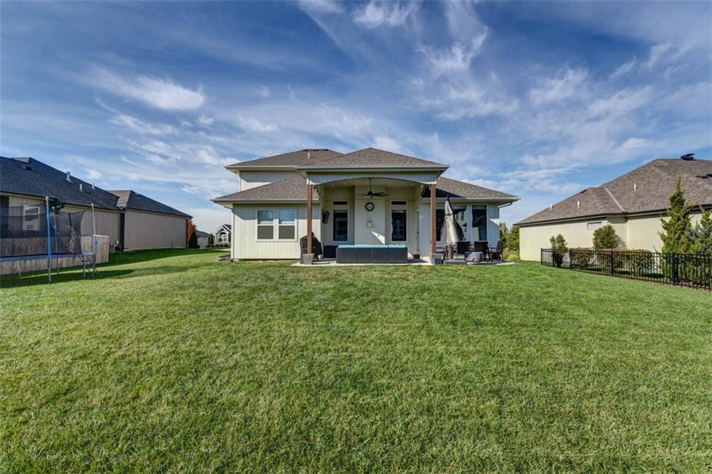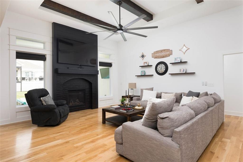 Impeccably designed and beautifully maintained, this exquisite 1.5-story home in Lee’s Summit captures modern elegance and refined comfort at every turn. From its sophisticated exterior and manicured landscaping to the thoughtfully curated interior, every detail reflects quality craftsmanship and timeless design. Step inside to soaring ceilings, rich hardwood floors, and sunlit spaces that immediately set a tone of understated luxury. The living room stuns with a striking fireplace and walls of windows that bathe the room in natural light. The open-concept layout flows effortlessly into the kitchen that makes an unforgettable first impression with rich dark cabinetry, sleek countertops, and an eye-catching hex-tile backsplash that anchors the space in style. A large center island invites conversation, while the incredible walk-in pantry and separate prep area elevate everyday living with seamless function. The main-floor primary suite offers a serene retreat, with an airy layout, spa-inspired ensuite featuring dual vanities, a freestanding soaking tub, and a spacious walk-in closet designed for both function and style. Upstairs, each secondary bedroom showcases high-end finishes, generous proportions, and access to beautifully appointed bathrooms. The finished lower level is equally impressive, designed for gathering and unwinding. A full wet bar with and wine room make it perfect for hosting, while a spacious living area and flexible 5th bedroom option offer endless possibilities. Outdoors, enjoy an extended living space on the covered patio overlooking a beautifully fenced yard. Every inch of this home feels intentional, blending craftsmanship and livable luxury in a way that stands out. This home offers the rare combination of modern sophistication and everyday warmth, a true standout in one of Lee’s Summit’s most sought-after communities!