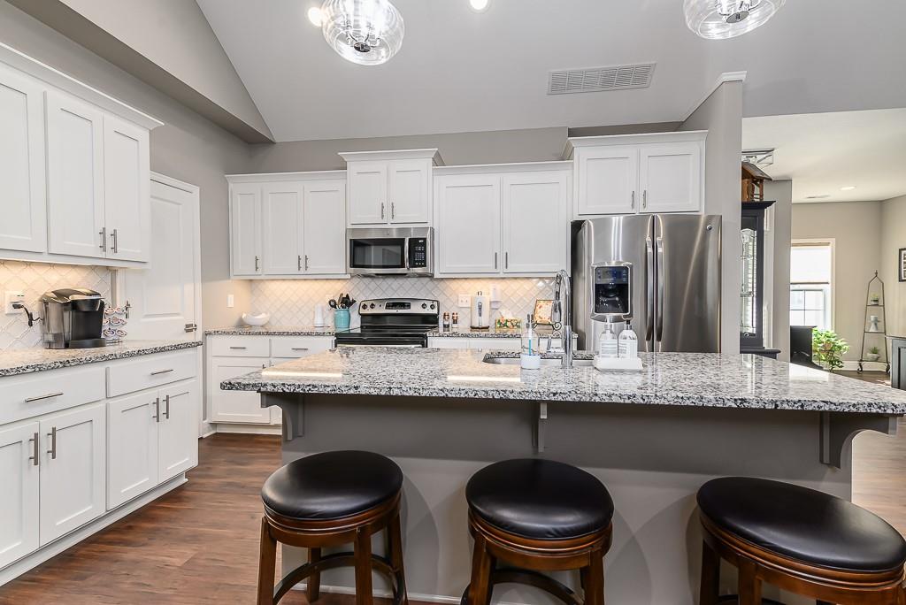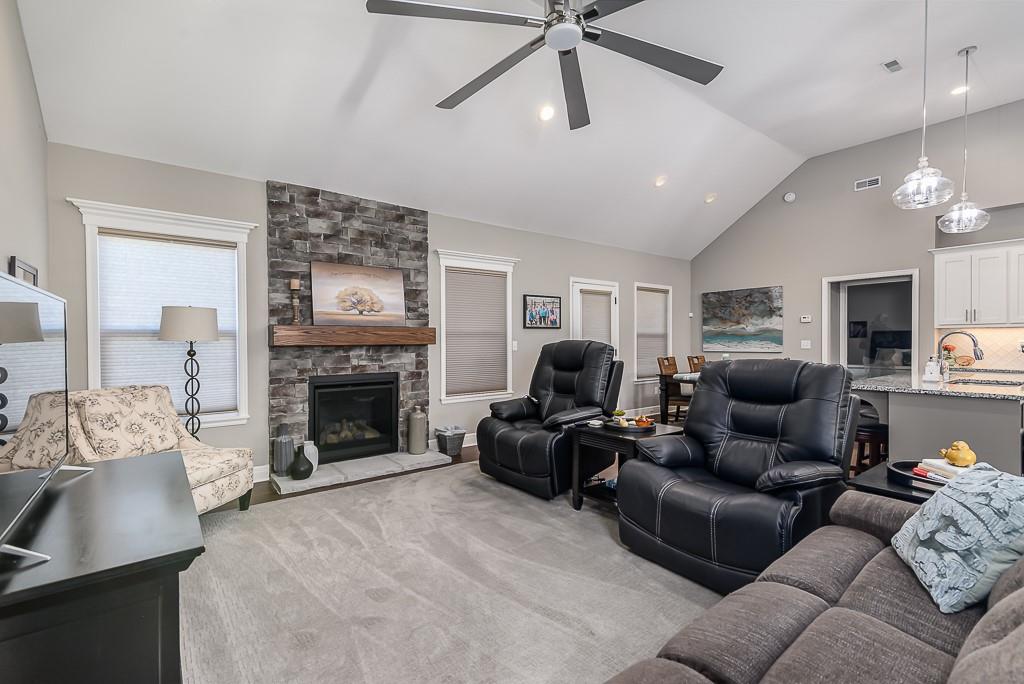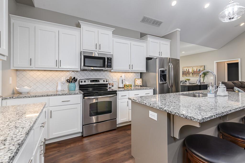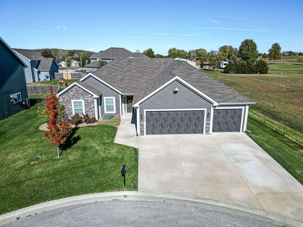 3-BEDROOM RANCH WITH OPEN FLOOR PLAN AND COUNTRY VIEWS — Looking for single-level living with style and comfort? This beautiful true ranch home has no steps and features an open layout perfect for easy living and entertaining. The living room boasts vaulted ceilings, a cozy fireplace, and luxury vinyl flooring that flows through the main living areas. The spacious kitchen is designed for everyday function with granite countertops, an island, and a walk-in pantry. The primary suite offers a private retreat with a large walk-in closet that connects directly to the laundry room, plus a luxurious bath with double vanities, granite counters, and a walk-in shower. Enjoy morning coffee or quiet evenings in the enclosed patio area, or take in the peaceful country views from the quiet cul-de-sac setting. With open space beside the home and a great location close to town, this property blends modern comfort with serene surroundings—perfect for anyone wanting a move-in-ready ranch in a quiet community.
