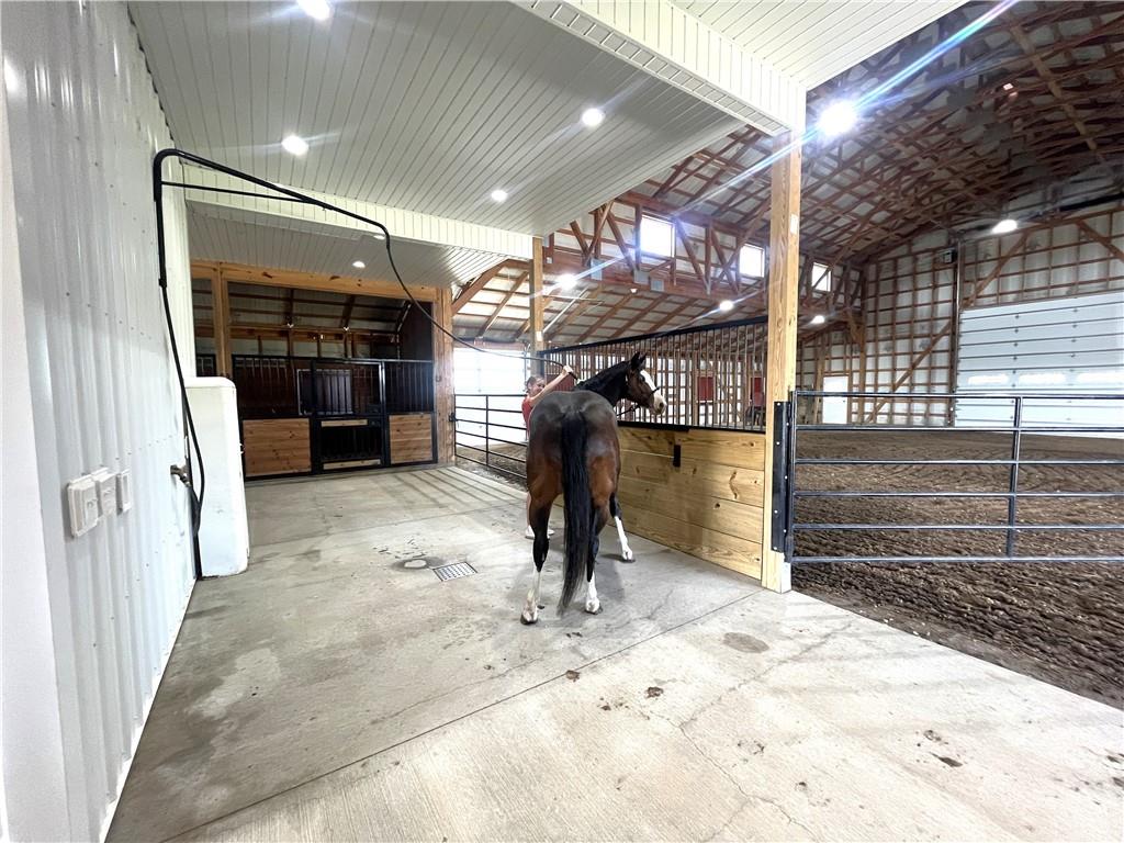Custom Barndominium Estate on 36 Acres with Pond, Horse Facilities & Treehouse. Discover the perfect blend of luxury living and equestrian amenities. This one of a kind barndominium sits on 36 sprawling acres, complete with a pond, a dream treehouse, and premier horse facilities. Pull up the driveway to a picturesque lane to arrive at your custom barndominium. Inside, soaring wood ceilings, a chef’s kitchen—complete with quartz counters—with open concept living. Two cozy bedrooms, office, laundry and bath are just down the hall. Step outside to the equestrian compound: eight premier stalls open onto paddock runs, inside wash bay area, and a 60x60 indoor arena that lets you ride year-round. A water line from the pond feeds the concrete trough and there are two automatic waterers for livestock convenience. Enjoy riding the horse trails at Poosey Conservation which is less than 7 miles from residence. Descend a gentle slope into the woods to discover the architect built treehouse. Fully heated and cooled, with running water ran to the house and reinforced safety railings, it’s set on stilts among the walnut boughs—an unforgettable venue for weddings, retreats or luxury micro-stay rentals.