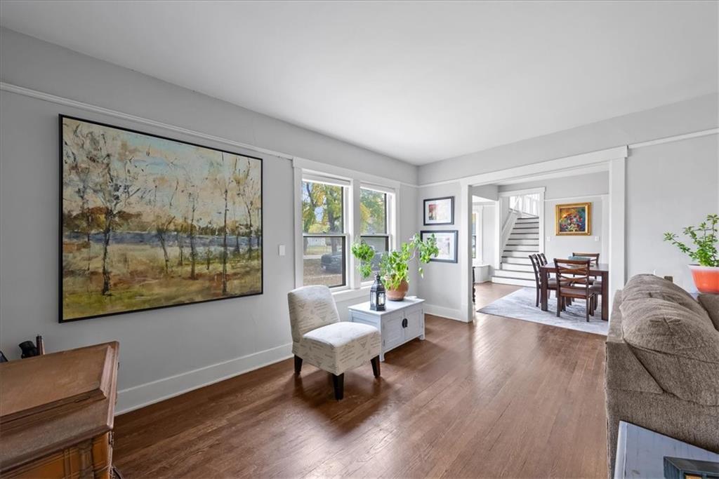 This delightfully charming 2-story home was built in 1900 and is located near Grandview's historic district, just blocks from downtown's shops and restaurants and offers easy highway access, just minutes away. Upon arrival, this spectacular 1.2 acre double lot impresses, with mature trees providing shade and a serene park-like setting (includes adjoining lot 803 High Grove). The detached garage offers parking, additional storage or a workshop space. On the exterior is a blend of modern convenience with the vinyl siding and a touch of vintage personality with scallop siding at the gables that honor the home's heritage. The sunroom in the front of the home is perfect for enjoying morning coffee or relaxing with a good book. The living room welcomes its guests with beautiful hardwood floors throughout and an electric fireplace for cozy ambiance. Flow into the dining room, which features a bay window seat and built-in buffet, ideal for entertaining. The kitchen, in the back of the home, opens to a breakfast nook for casual dining on one side and leads out into a closed in back porch area that gives conservatory energy with its many windows. Continue through the kitchen, past the powder room, to a potential primary bedroom, which offers up the convenience of single-floor living, complete with main-level laundry. Head upstairs from the dining to find four more spacious bedrooms with generous closets and tall ceilings that create an airy, open feel plus a full bathroom to serve any inhabitants needs. Picture rails provide an old-timey nostalgia as they preserve the original plaster walls. With a newer AC and excellent overall condition, this five-bedroom, 1.5 bathroom home has been lovingly maintained and is ready for its next chapter. Pre-inspections have been conducted with reports available upon request for buyers' peace of mind and seller's desire to sell in it's present condition.