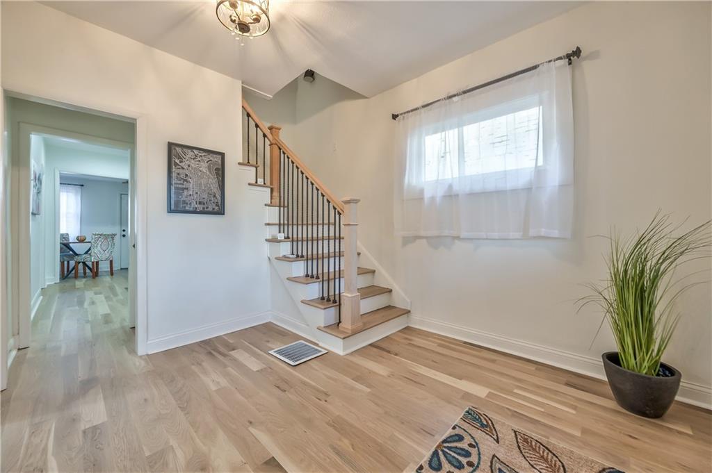 Timeless KC architecture meets modern joy in this gorgeous Pendleton Heights Shirtwaist. Stepping inside feels simply happy — bright, welcoming spaces with brand new natural white oak floors that flow throughout, complemented by a striking white oak staircase. The classic layout features a versatile first-floor bedroom that readily serves as a dining room, echoing how these historic homes were originally lived in. The kitchen is a blend of style and heritage, with crisp new cabinets, granite counters, a tiled backsplash, stainless appliances, and lighting that channels authentic Shirtwaist charm. Upstairs, you’ll find three more spacious bedrooms and another updated bath. Thoughtful laundry options include space for hookups in the first-floor bathroom closet (for a washer/dryer combo unit) and in the fresh/clean basement, as is traditional. Discover your private oasis: a newly built, oversized wood deck nearly as wide as the house itself — ideal for quiet evenings or weekend brunch. The inviting front porch is made for slowing down and watching the friendly neighborhood roll by. Live at the heart of Kansas City’s vibrant historic community. Just around the corner is the beloved Pendleton Heights Community Orchard, with Cliff Drive and Kessler Park offering trails, biking, and disc golf. This close-knit neighborhood also hosts “Coffee & Meet Your Neighbor” events — easy, welcoming ways to connect and become part of the community. Plus, it’s only minutes to the River Market, the Crossroads, and downtown KC. Zillow estimates the homes on either side are valued above $300K.