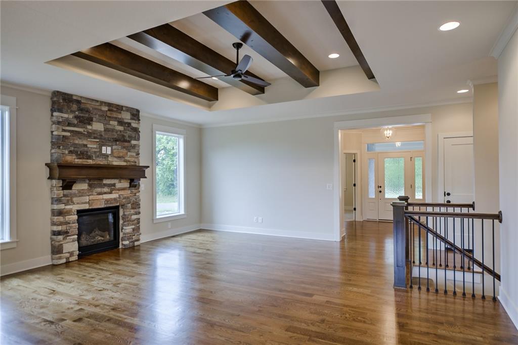 The Chestnut reverse 1.5-story by Symphony Homes, LLC offers refined main-level living with craftsmanship and contemporary comfort in Archer’s Landing at Sundance Ridge. Now at the mechanical stage with roof on, this home features a walk-out lower level and a covered deck overlooking open green space for peaceful outdoor living. Hardwood floors span the entry, great room, kitchen, and breakfast area. The front porch includes a suspended stoop—ideal for a future storm room, wine room, or added storage. Photos shown are of a previously sold home illustrating similar finishes. The Chestnut blends luxury and functionality at every turn. Enjoy The Village amenities—clubhouse with fitness facility, gathering area, and resort-style pool with rock waterfall and slide—in Blue Valley Schools. Just 11 min to Blue Valley High, 8 min to Price Chopper, 16 min to BluHawk, and 16 min to Heritage Park.