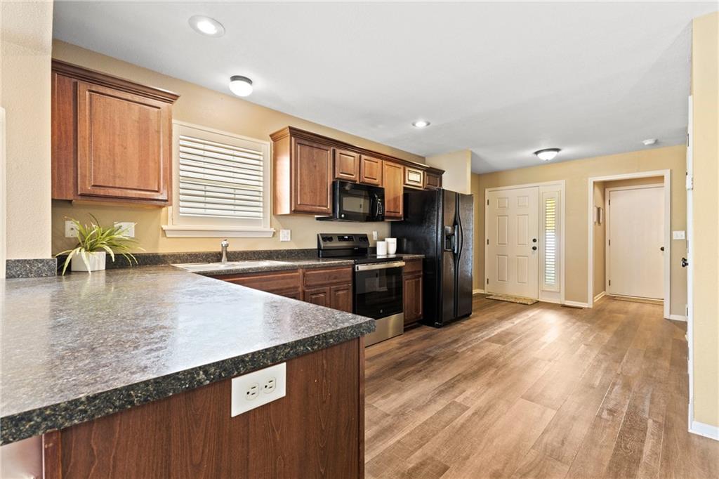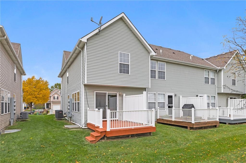 Maintenance-free living in highly desirable Benson Place! This beautifully maintained 3 bed, 2 full + 2 half bath townhome with FINISHED basement offers a bright and open main level with many windows, updated LVP flooring, a cozy living area with fireplace, and a kitchen/eat-in dining space that flows seamlessly for easy entertaining. Enjoy plantation shutters, updated window coverings, and an upgraded shade on the sliding door that opens to a peaceful, expansive backyard view filled with greenery and nature! Upstairs features a spacious primary suite with a huge walk-in closet and double vanity bath. Two additional bedrooms share a convenient Jack-and-Jill bathroom with updated flooring. The finished lower level is the perfect bonus space—complete with a wet bar/mini-fridge, large finished closet, storage under stairs, and an added half bath for convenience. ALL APPLIANCES STAY INCLUDING REFRIGERATOR AND W/D! Enjoy worry-free homeownership with maintenance-free living that includes NO yardwork or heavy snow removal AND all exterior maintenance is covered by the HOA. Take advantage of fantastic community amenities with access to 2 community pools, trails, splash park, and play area. Located within Liberty Public Schools and just minutes from local restaurants, shopping, and quick access to I-35 and I-435 highways. Move in ready!