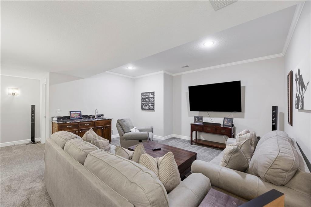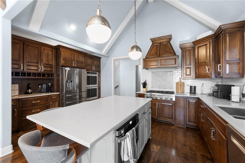 Built in 2015, this beautifully appointed 2-story home in coveted Mission Pines combines timeless design with effortless living. Enjoy a gourmet kitchen featuring custom cabinetry, Thermador gas range, double ovens, quartz countertops, a butler’s bar, and a large center island perfect for entertaining. A spacious walk-in pantry with a built-in desk and first-floor laundry with custom built-ins adds convenience to daily life. The main-level primary suite offers hickory hardwood floors, vaulted ceilings, a generous walk-in closet, and a spa-like bath with soaking tub and separate walk-in shower. Upstairs, you’ll find a loft overlooking the main floor, 1 bedroom, full bath, and a 5th non-conforming bedroom or flex space. The daylight lower level features a second family room with a wet bar, 2 bedrooms, each with walk-in closets, and a full bath, totaling 4 bedrooms + 5th non-conforming and 4.5 baths. Every bath showcases quartz countertops and designer tile, complemented by upgraded lighting throughout. Outdoor living is equally impressive, relax on the screened porch, unwind on the composite deck, or gather around the private stone patio within the fenced yard. The oversized two-car garage includes a convenient side door to the backyard. Mission Pines is a hidden gem quietly tucked away, yet within walking distance to The Village, Corinth Shops, and Meadowbrook Park. The HOA provides lawn care, snow removal, and water for the sprinkler system, allowing true lock-and-leave peace of mind. This rare opportunity offers refined living in one of Mission’s most desirable maintenance-provided communities. Don’t miss it.