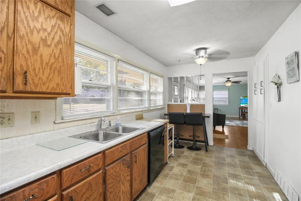 Timeless Charm Meets Everyday Convenience! Step into this spacious 1950s ranch that perfectly blends vintage character with modern updates. You’ll love the easy main-level living — complete with laundry on the main floor! Original details like hardwood floors, a classic bathroom, and built-in cabinetry add a touch of mid-century charm, while thoughtful updates bring comfort and practicality to today’s lifestyle. The kitchen features a newer dishwasher, gas cooktop, updated lighting and ceiling fans, and even a four-door pantry for extra storage. An inviting bonus room off the kitchen offers flexible space — perfect for a family room, home office, or large dining area for entertaining. Downstairs, hobbyists and DIY lovers will appreciate the workshop area with over 20 feet of built-in cabinets, counters, shelving, and LED lighting. The basement also includes a second full bath ready to be updated and finished and an additional finished room ideal for storage or an office. Outside, enjoy the large fenced yard, complete with a storage shed and new garage doors and openers. Conveniently located just minutes from major highways and Raytown Schools, this home offers classic style, ample space, and endless possibilities to make it your own.