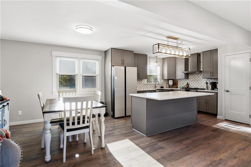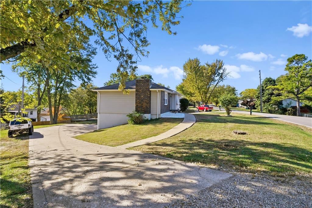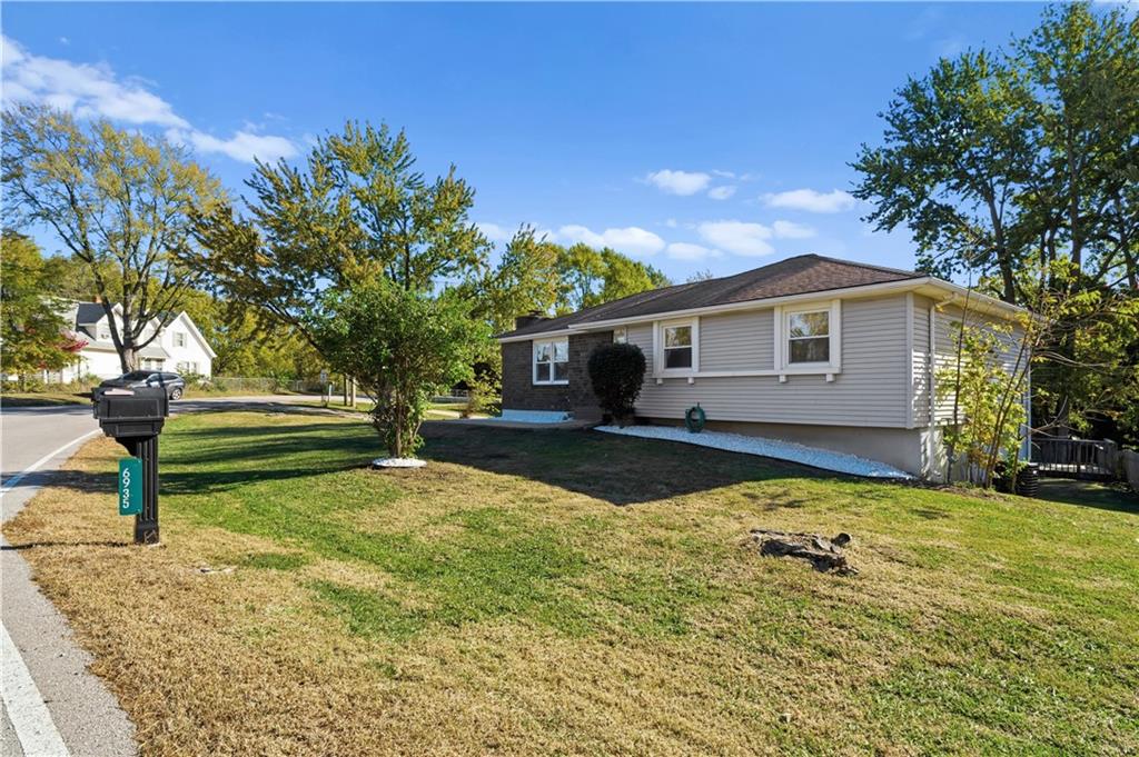 Meticulously maintained 4-bedroom, 2 bath, nestled near the heart of Parkville. This clean, move-in-ready home features nearly 1842 square feet of living space. Open- concept living room with cozy fireplace flows into the stunning eat-in kitchen with new cabinetry, oversized center island with built in microwave, new stainless-steel appliances, and tile backsplash. Primary bedroom includes private en-suite with tiled shower. Two additional bedrooms share a second full bath. Walk-out lower level offers a fourth bedroom AND a bonus rec room for entertaining. Detached outdoor deck perfect for grilling and relaxing. Rear-entry 2-car garage with abundant driveway parking. Neighborhood Park with-in walking distance. Easy access to top-rated schools, shopping and dining, you will enjoy the best of suburban living with the vibrant KC lifestyle just a stone's throw away.