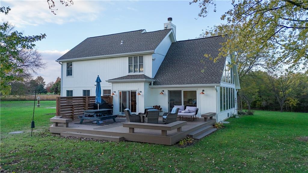 Luxury Countryside Retreat with Modern Elegance on 10m/l Beautiful Acres with a 2+m/l acre well maintained and manicured pond to enjoy timeless serenity and make many family memories Experience refined living in this beautifully fully renovated 1.5-story ranch, where modern luxury meets peaceful country charm. Flooded with natural sunlight through stunning large A-frame windows encompassing the morning sunrise views, and relax in it's open-concept living area framing breathtaking views of the serene landscape beyond. The gourmet kitchen is a chef’s dream, featuring a gas stove, premium finishes, and seamless flow for entertaining. A separate dining room area host plenty of space for family and friends. The primary suite offers a private escape with a spa-inspired bath, including a large walk-in shower and expansive closet space. Two more bedrooms on the second floor with their own private bathroom, living "den" space and office area. The finished basement provides a full secondary living area—complete with a large bedroom, full bath, and lounge space—perfect for guests or multi-generational living. Lots of Storage area for all your needs. Step outside and embrace the tranquility of your own private retreat. Enjoy peaceful mornings by the large serenity pond, and evenings around the fire pit, or unwind on the Trek decking patio surrounded by mature trees offering natural privacy. The property also features a **barn ideal for horses as well as a separate shop/garage for the hobbyist. And complete with the "taj mahal" Chicken coup for your feathered friends. Definitely a private and peaceful retreat to enjoy.