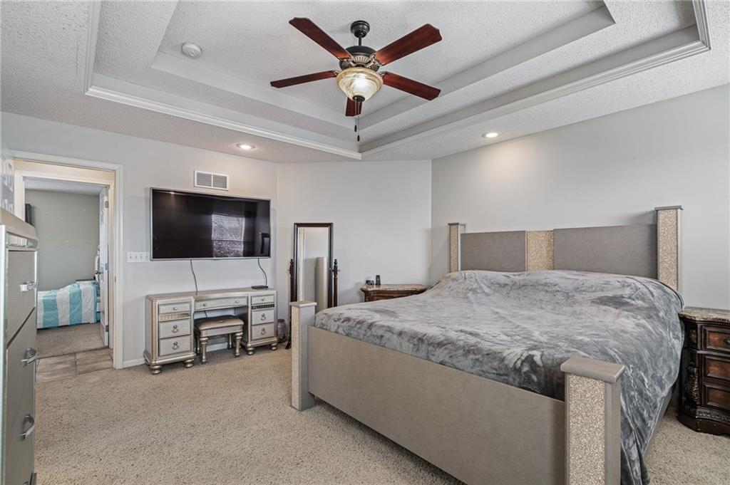 Welcome to a bright & inviting split-level home that’s truly ready for its new owner. The open living room and kitchen feature vaulted ceilings and generous natural light. Major updates have already been done— including a roof that’s under two years old and a newer HVAC — so you can just move in. Living room has a fireplace and the eat-in kitchen walks out to the deck which overlooks the large back yard with newer fence, offering plenty of outdoor space. Primary bedroom is spacious with cathedral ceiling and large ensuite bathroom has double vanities. Recreation room in finished lower level is great for additional living space. Featuring 3 Bedrooms, 2.5 Baths, and a 2-car garage, there is also plenty of storage in the lower level. Great neighborhood with a community pool and park. Welcome Home.