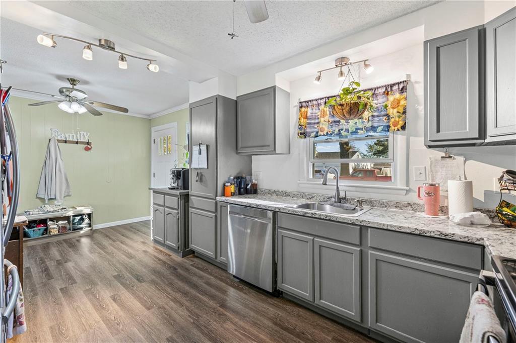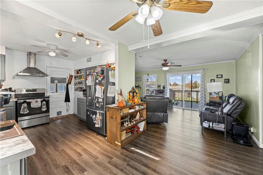 Perfect Starter Home in Osawatomie! This charming 2-bedroom ranch is ideal for first-time buyers looking for comfort and value. Stylish newer vinyl plank flooring flows throughout the main living spaces, and the unfinished basement offers plenty of room for storage or future expansion. The former attached 1-car garage has been partially converted, offering flexible space for a workshop, hobby area, or additional storage. A backyard storage shed adds convenience, and the large yard is perfect for pets, gardening, or entertaining. With brand-new siding and fresh exterior paint, this home is move-in ready inside and out. Affordable and inviting, don’t miss your chance to make it yours!