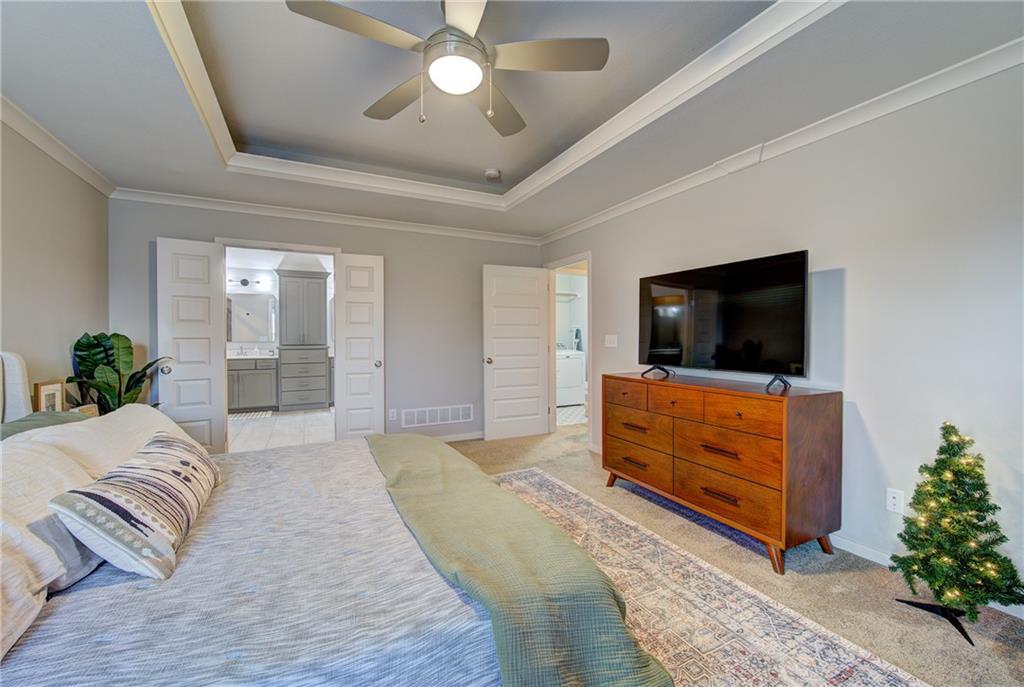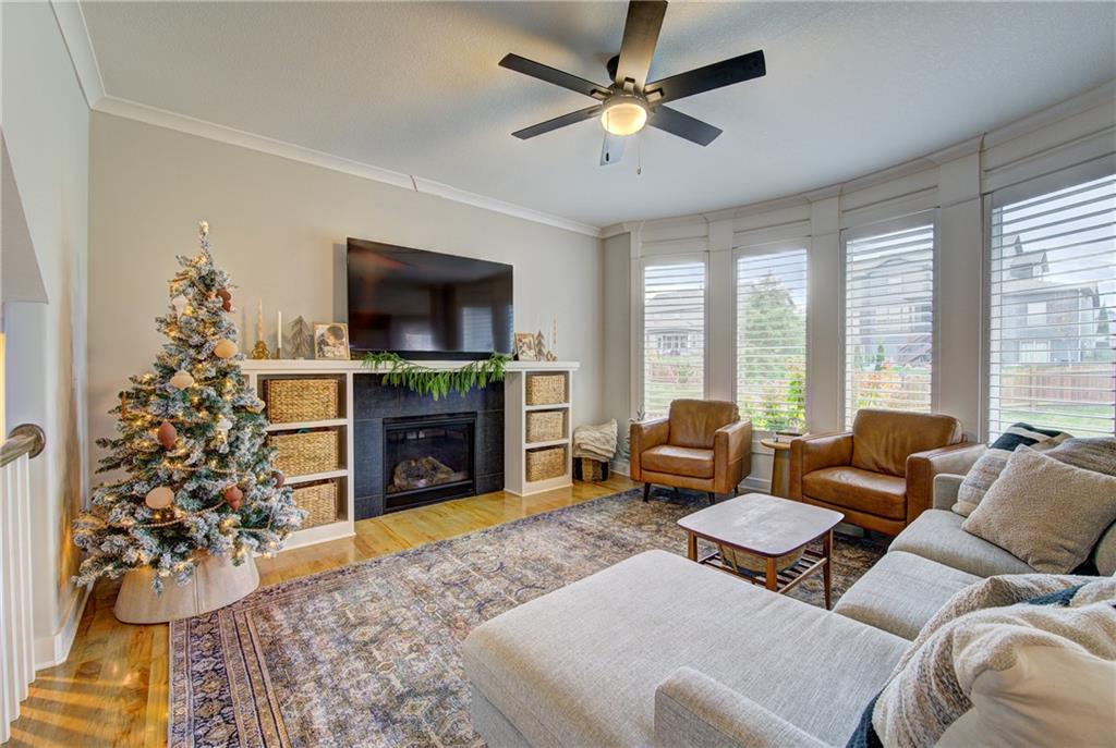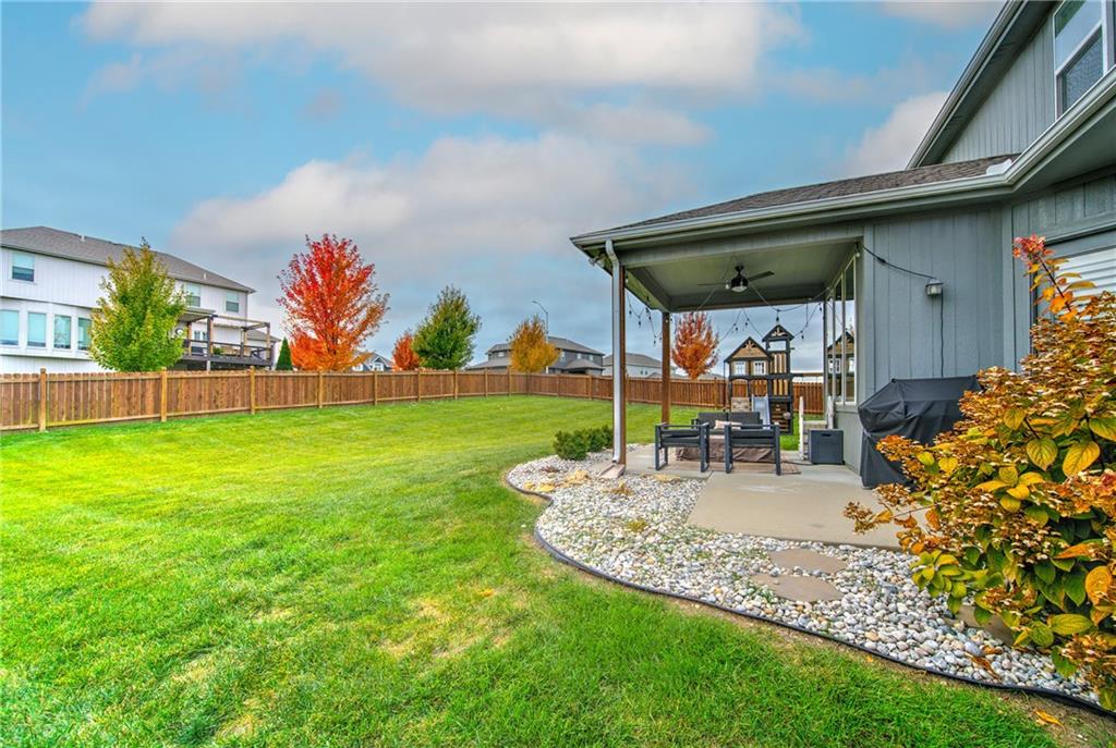 This two-story home, built in 2018, shows the pride of ownership. It looks like new without the wait! Entering you see the hardwood floors and vaulted ceilings, open floor plan and its almost 3,500'. The main level features a formal dining area into the living room, with a beautiful fireplace, large windows for the sun to shine through. And nice built-in shelving. The eat-in kitchen has beautifully painted cabinetry, an island with extra seating, and a large walk-in pantry with a nice 1/2 bath on the main level. From the kitchen, you can access the covered patio, an ideal space for entertaining and watching the kids and pets play in the fenced back yard. Situated on a 0.26-acre lot, the backyard offers nice landscaping, a privacy fence, and nice plants and bushes. Upstairs, the primary suite awaits, complete with a tray-lit ceiling and large windows. The oversized primary bathroom features beautifully tiled floors and shower, a large soaker tub, and a spacious walk-in closet. Also includes two additional bedrooms with a Jack and Jill bath, a 4th bedroom with private suite, and a nice laundry room on this level. The lower level, finished in 2020, incorporates the modern finishes and attention to detail found throughout the rest of the home. It features a tiled wet bar with extra cabinetry, a sink, and quartz counters, and an extra count top perfect for the kids to do homework or just a place to enjoy. A cozy family room and 2nd fireplace. The fifth bedroom/office, with double door entry, and the fourth full bath complete this level, with luxury vinyl plank floors throughout With access to the wonderful amenities Benson Place Fieldstone has to offer and located within the award-winning Liberty School District. This home truly has it all. Come See, Fall in Love and make this your next place to call Home.