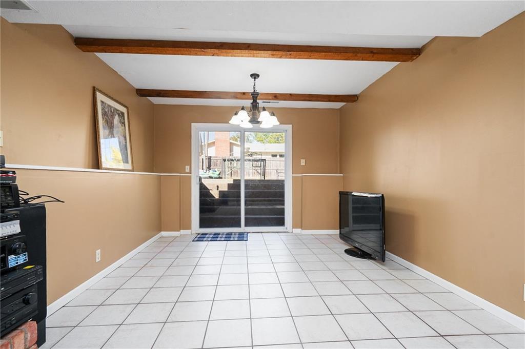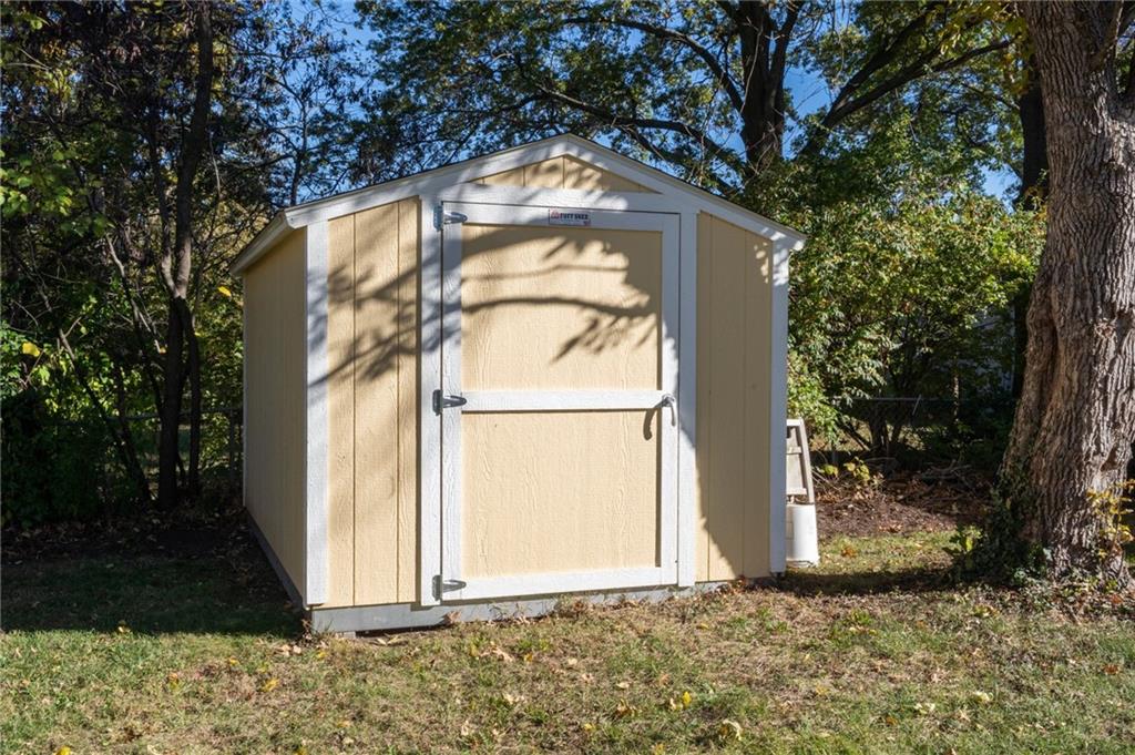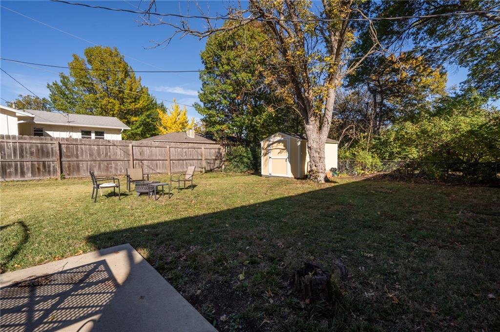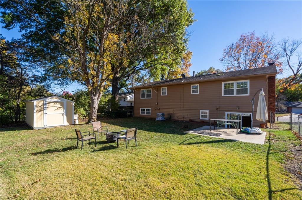 3 Bedrooms | 2 Bathrooms | 2-Car Garage | Fenced Yard | Move-In Ready Tucked away on a cul-de-sac in a convenient west-Lawrence location, this charming split-level home offers comfort, space, and value. Step inside to beautiful hardwood floors flowing through the bright living and dining area. The spacious kitchen features updated stainless-steel appliances, solid wood cabinetry, tile flooring, and plenty of counter space for meal prep or entertaining. Upstairs, you’ll find three comfortable bedrooms and a refreshed full bath with modern tile surround. The lower-level family room with a cozy brick fireplace and exposed beams creates a perfect second living space, playroom, or home office. Enjoy outdoor living in the large fenced backyard complete with a patio, mature shade trees, and a new storage shed—ideal for gardening tools or hobbies.