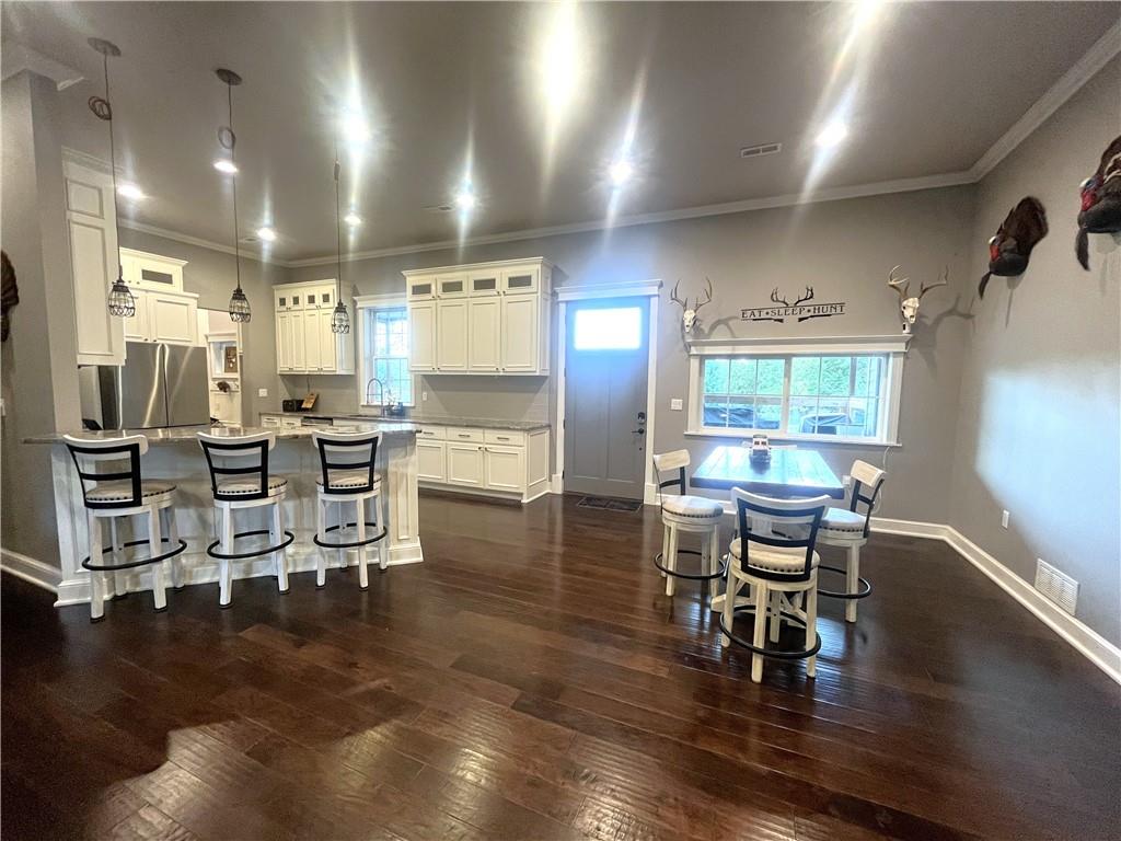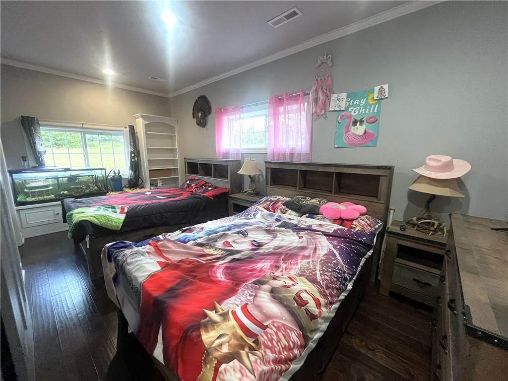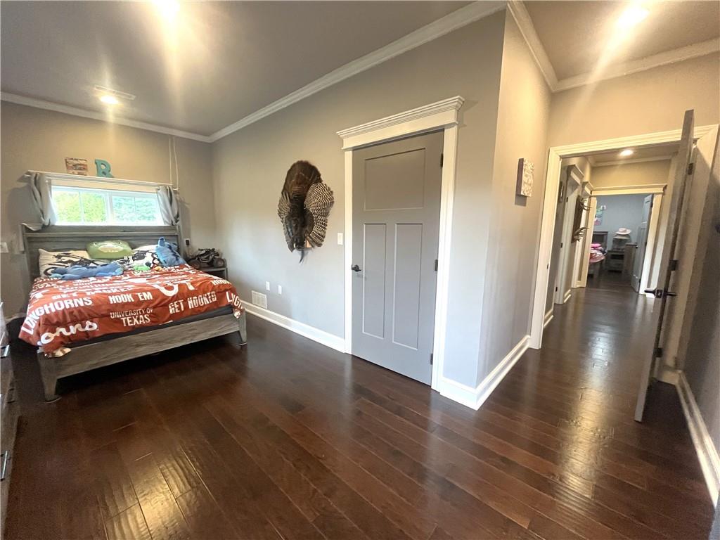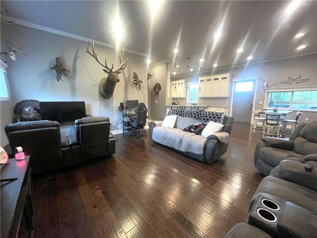This beautifully crafted 2,200 sq ft ranch-style home, built in 2017, offers the perfect blend of privacy, convenience, and timeless design. Nestled just off the highway in a secluded setting, this 4-bedroom, 2.5-bath residence features an open-concept layout ideal for both relaxed living and effortless entertaining. Step inside and be greeted by custom woodwork, rich hardwood floors, and granite countertops that elevate every space. The 36” wide doorways provide a spacious, accessible flow throughout, while the striking 8’ tall front door makes a bold and elegant first impression. Outside, the property unfolds across 12.58 acres complete with timber trails, a stocked pond, and a versatile patio perfect for gatherings. The attached three-car garage adds convenience and storage.