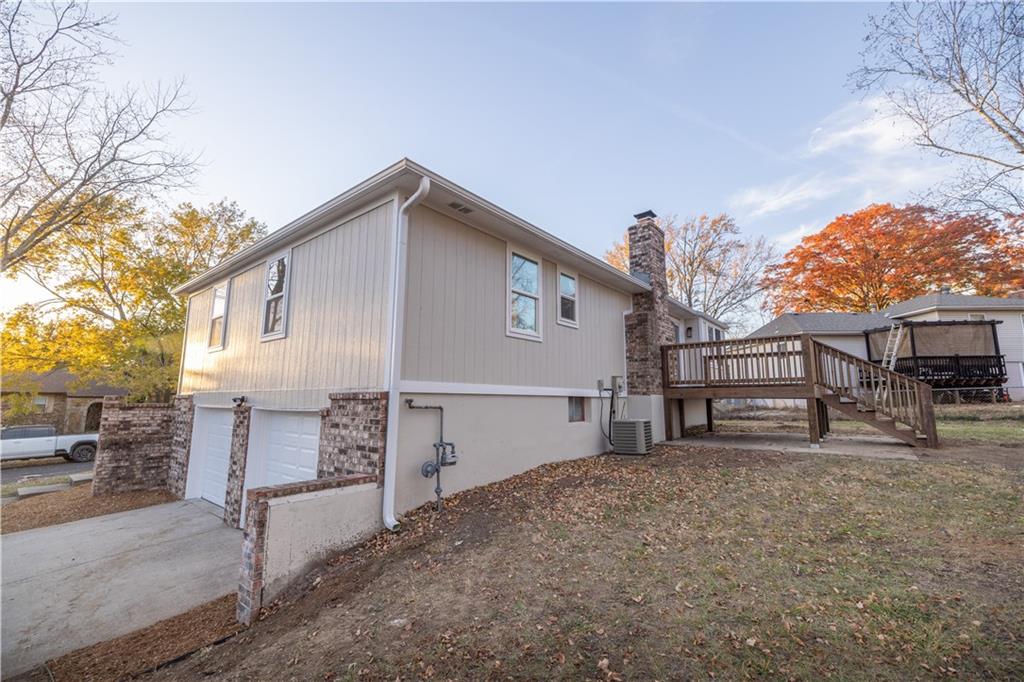 This beautifully renovated home offers the perfect blend of comfort and character. Modern updates throughout make this home feel truly move-in ready. The great room with vaulted ceiling and gas fireplace opens to the kitchen with granite counters, brand new stainless appliances, pantry, white cabinets and breakfast area. Primary suite features a private bath with tile shower. Two additional bedrooms, 2nd full bath with tub/shower and formal dining room/office space are also on the main level. The finished lower level includes a family room, laundry and additional storage space. Oversized garage with plenty of room for a workbench! The deck overlooks a level backyard with mature trees. Located on a quiet cul de sac and close to highways, shops, dining and Top Rated Blue Springs Schools!
