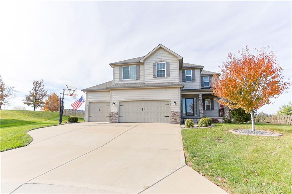 Nestled on a quiet cul-de-sac, this thoughtfully designed home offers the ideal blend of style, functionality and location. The open floorplan welcomes you with soaring ceilings, abundant natural light and a warm, modern aesthetic. The heart of the home features a beautiful kitchen seamlessly flowing into the dining and living spaces,perfect for both everyday living and entertaining. A spacious primary suite complete with dual vanities, walk-in shower and a generous walk-in closet! Downstairs you’ll find a versatile space—idealrecreation area with 3 TV hookups! Outside, the fully fenced backyard offers a serene setting for summer evenings, with ample room for BBQs, play or simply relaxing. This home was crafted with quality in mind, premium finishes and smart-home touches, and energy-efficient features and even a dedicated 240V garage EV charging outlet. With low-maintenance landscaping, a three-car garage, and a highly rated Blue Springs School District, the location truly has it all. Just minutes from shopping, dining and major road access, you’ll enjoy both convenience and tranquility. Check it out, NOW! Update- Blue accent wall has been painted grey since photos. Seller has added it to the photo collection along with some of the jellyfish lighting experience frm last season.