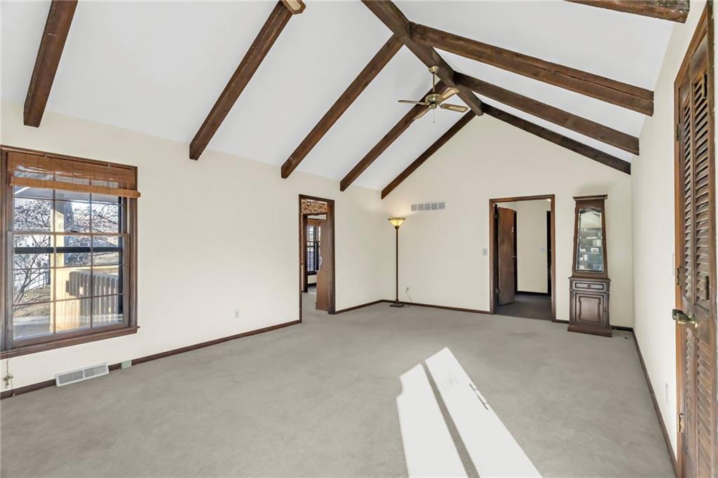 Welcome Home to this well maintained ONE-OWNER HOME, nestled on a generous .41-acre lot that backs to peaceful treed green space. This residence offers privacy and room to breathe. Step inside to a soaring vaulted Living room centered around a classic brick wood-burning fireplace flanked by custom built-ins and bookcases. Sliding doors open to the first of two brand-new decks — ideal for friends and family gatherings with nature as your backdrop. Adjacent is a sunny formal Dining room with direct access to the second new deck a perfect spot for morning coffee. The open flow continues into a bright eat-in Kitchen boasting stainless steel appliances, abundant cabinetry and counter space. The primary suite featuring striking exposed wood beam ceiling detail, walk-in closet and en-suite. Two additional bedrooms, a full bath and convenient main-floor laundry complete the upper level. The walk-out Lower-level Family room impresses with a second fireplace and is made for movie and game nights. Built-ins with book shelves flank the fireplace with access to the new concrete patio overlooking the large backyard. A generous sized Garage- 25’x31’ giving room for work space, toys and tools! **Pride of ownership shines with recent updates to include- new HVAC, sidewalk, fresh exterior paint in 2020. Total Roof replacement in 2019 and more *recently two new Decks, new concrete Patio, and fresh interior paint throughout in 2025! *Located in a highly desirable Liberty neighborhood just minutes from top-rated Liberty schools, historic downtown Liberty Square and everyday shopping. If you’ve been searching for a move-in-ready ranch in Liberty MO with privacy, treed lot, finished basement, main-floor laundry, wood-burning fireplace and big garage – this is it!