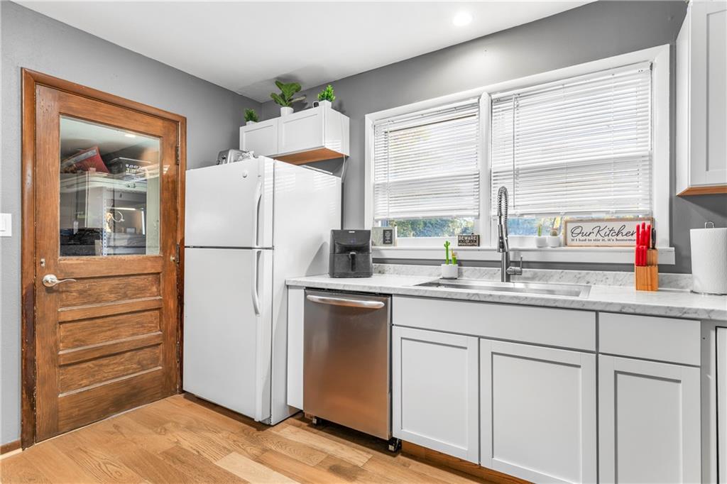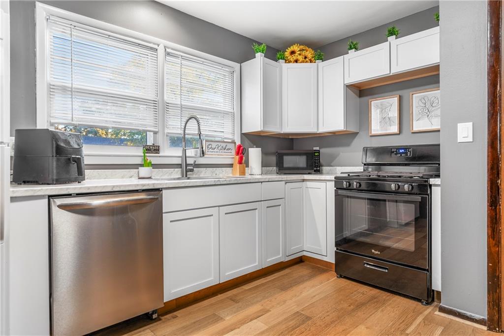 Nestled on a quiet Lenexa street, 13017 W 92nd Street pairs a prime location with easy, main-level living—just minutes to shopping, dining, parks, and quick I-35 access. A flat, usable yard and welcoming shade tree set the curb appeal, while a nicely sized garage plus extra rear parking add everyday convenience. Inside, hardwood floors grace the living room and all bedrooms, ready to complement your style. This home offers a fantastic canvas in the sought-after Shawnee Mission School District.