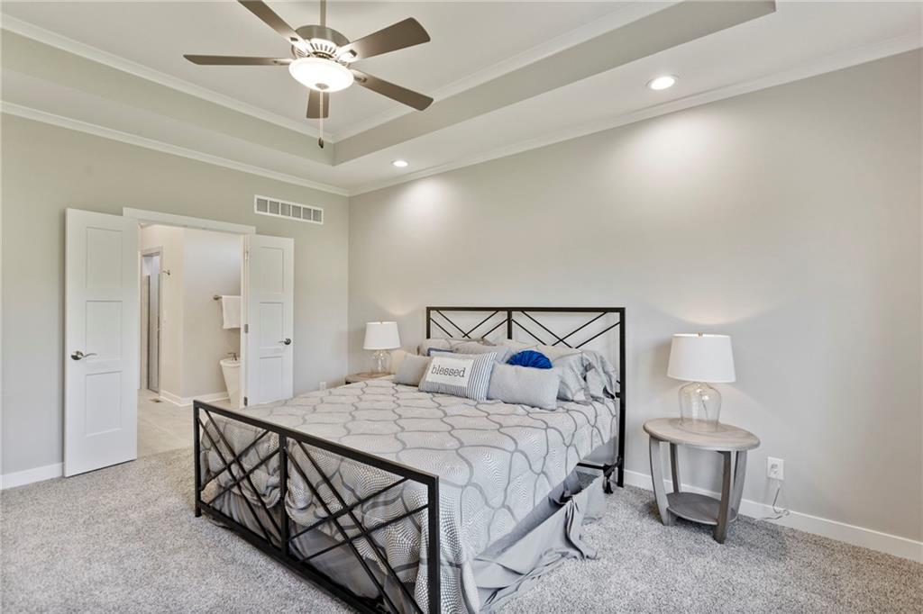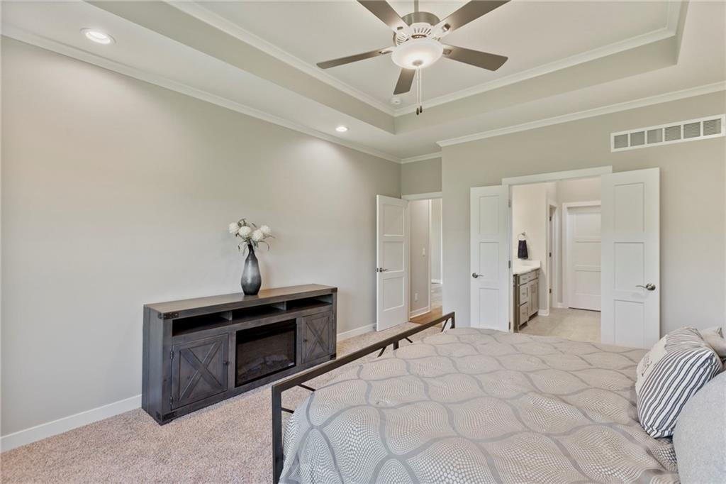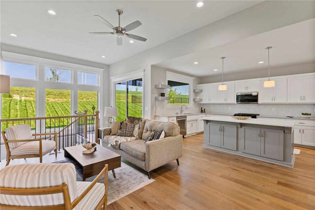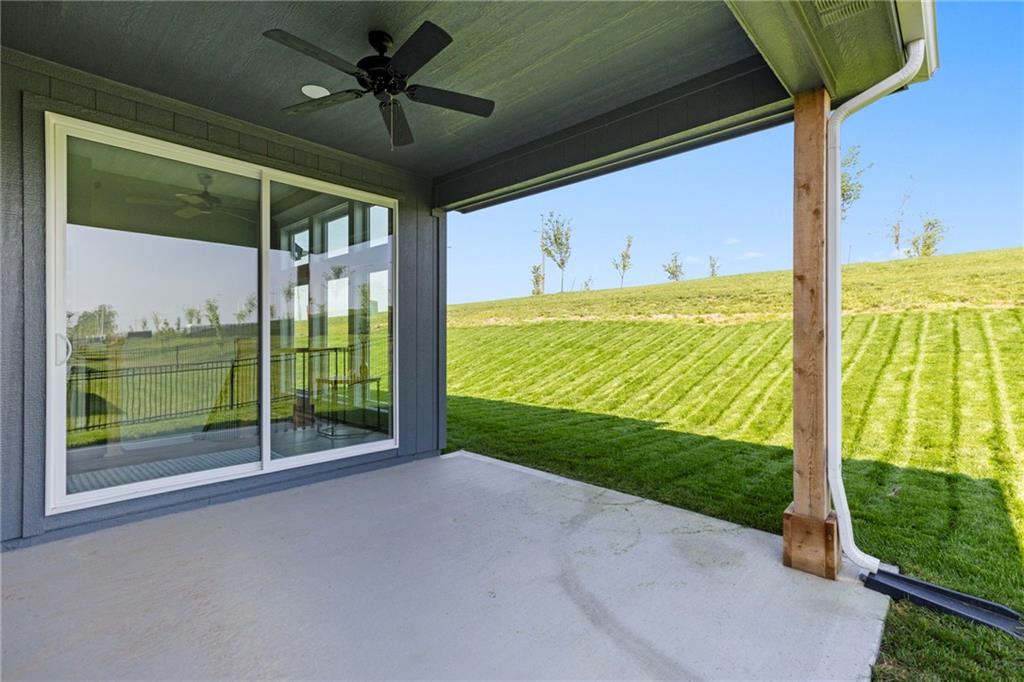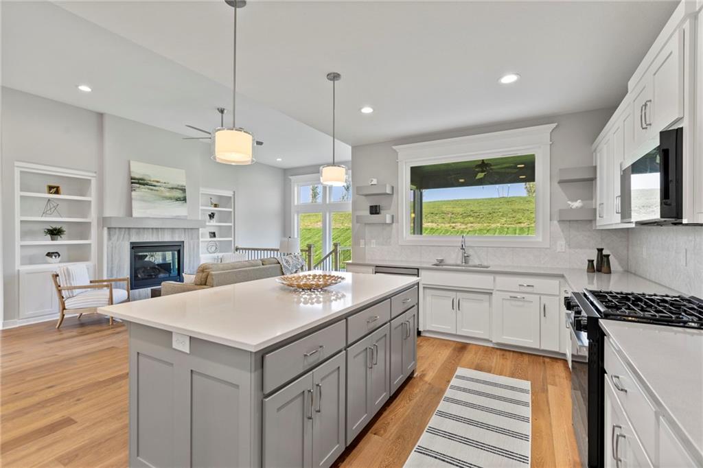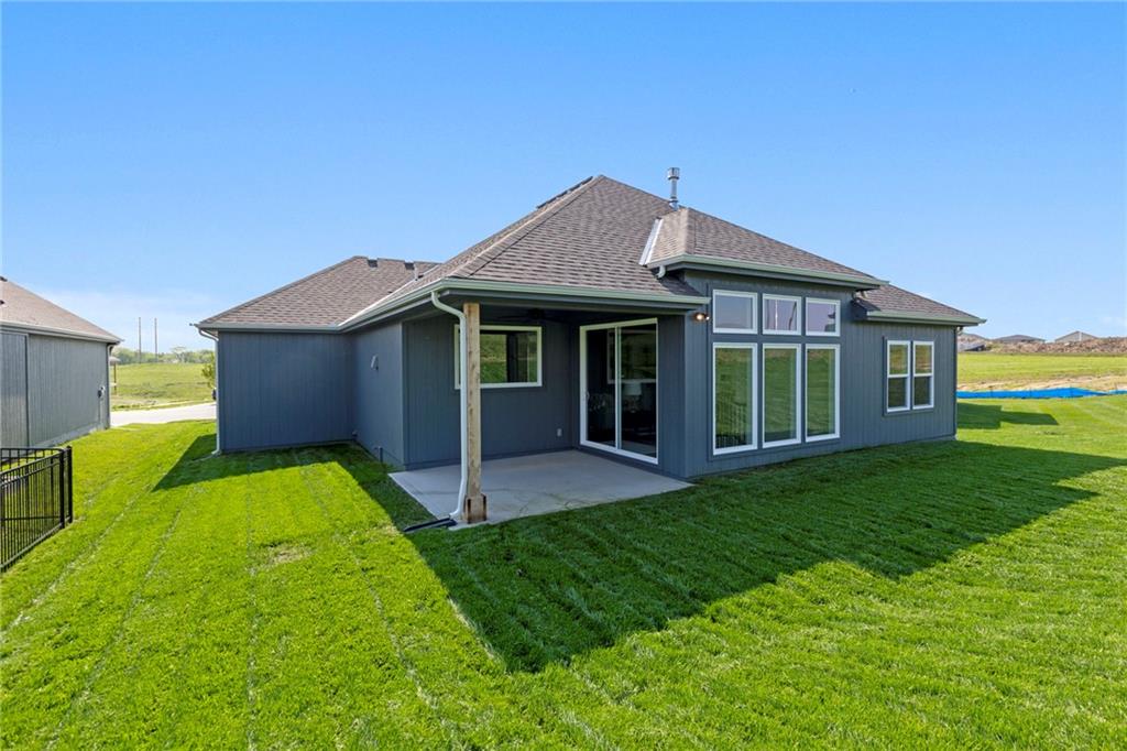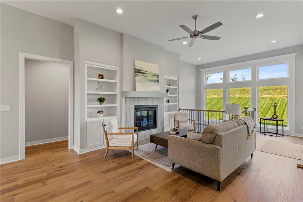 ** Exceptional quality meets effortless living in the final Patriot Home available in Maintenance Provided Cadence Villas.This home is finished.** Resize your living space with ease and enjoy the benefits of maintenance provided living in the Truman by Patriot Homes! Located on a secluded cul-de-sac homesite, this Reverse 1.5-story open concept floor plan includes a stone-clad traditional façade, three-car garage, and covered front porch. The 8-foot front door leads into a spacious entry with a 12-foot ceiling highlighted by an elegant trim treatment and chandelier. Hardwood flooring throughout the main entry, living and kitchen accentuates the seamless flow between the dining room, kitchen, and great room while a bedroom and full bathroom just off the entry makes for an ideal guest or bonus room. Arguably the showpiece of the home, the kitchen is outfitted with expansive quartz countertops, large center island, shaker style custom cabinetry, and stainless steel Samsung appliances. Opposite the kitchen is a cozy great room with a gas fireplace, built-in bookshelves, floor-to-ceiling windows, and an 8-foot sliding glass door that opens to a covered patio. A private hallway leads to the master suite showcasing an exquisite freestanding soaker tub, zero entry walk-in shower, Bluetooth audio system, and a sizeable walk-in closet with third tier pull down rods. The Truman comes equipped with additional conveniences such as 8-foot tall garage doors with an included belt drive opener on main door, an irrigation system, high efficiency 96% Lennox furnace, whole house humidifier, and 50-gallon electric water heater. Homeowners also have an annual HOA fee of $600. This villa is in Prestigious Phase 1, Cadence Villas, a Hunt Midwest Maintenance Provided Community.
