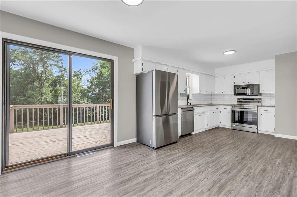 Welcome to 1105 W Forest Dr, a beautifully updated 3-bedroom, 2-bathroom raised ranch tucked away in a quiet Olathe neighborhood. Completely remodeled just a year ago, this home combines modern comfort with classic charm. Step inside to find bright, open living spaces, including two spacious living areas that are perfect for relaxing or entertaining. The modern kitchen comes equipped with all appliances, stylish finishes, and plenty of storage. Enjoy easy access to the deck and fenced backyard through sliding glass doors, an ideal setup for outdoor dining or letting pets play freely. Additional highlights include a built-in two-car garage, updated bathrooms, and contemporary flooring throughout.