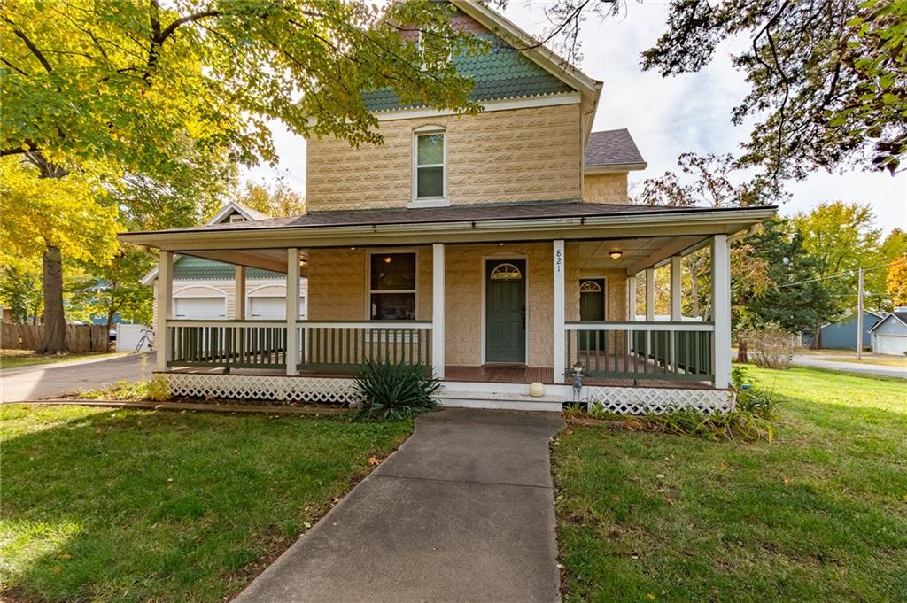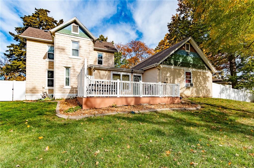 Step back in time with this exquisite 1910 two-story home, beautifully renovated top to bottom in 2004. The expansive wraparound porch on three sides invites you to relax and enjoy the charming surroundings. Inside you’ll find three bedrooms and 1.5 baths, updated kitchen, extra large mudroom area and an unfinished basement for extra storage and safety. The two car attached garage still feels almost new and the backyard deck (2010) overlooks the fenced backyard—perfect for entertaining or simply unwinding. Utilize the storage shed in the backyard to keep garage space open. Nestled on a corner lot with a generous yard in both the front and back, this property combines historic charm with modern conveniences. Plus, the roof was newly replaced 10/25 with upgraded class 4 impact resistance shingle, ensuring peace of mind for years to come and potential insurance savings. Don’t miss the chance to own this timeless treasure!