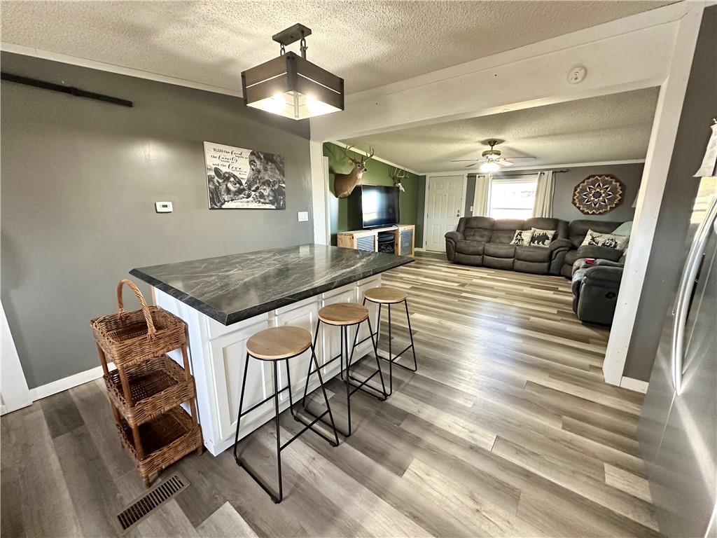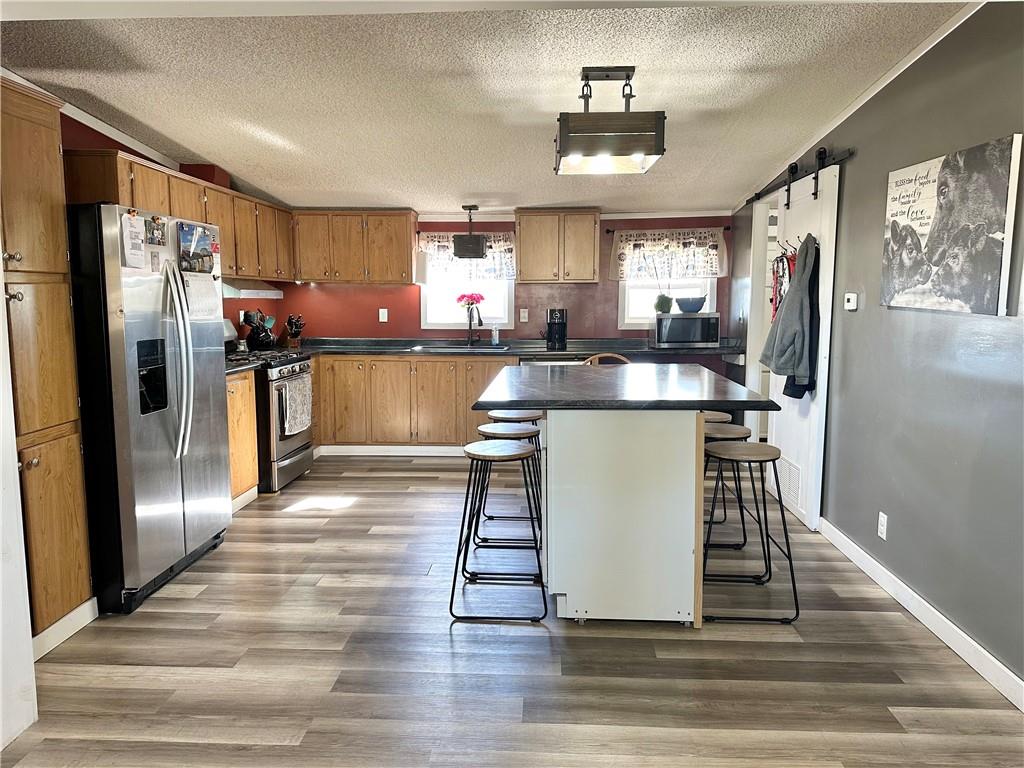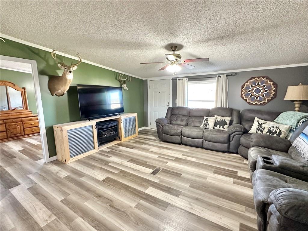 You don't want to miss this adorable 3 BD, 2 BA home on 4 acres....on blacktop! Ready to move into & updated throughout. Open floor plan. The kitchen features a kitchen island, ample storage & stainless steel appliances that stay! (refrigerator, gas stove, dishwasher & microwave) The laundry room is off the kitchen (washer & dryer stay). The living room is open to the kitchen. Entertainment center with fireplace stays! The master bedroom has a walk in closet and a spacious master bathroom featuring a shower & a garden tub. The two additional bedrooms are on the other side of the house, along with the 2nd full bathroom. You will love sitting on your covered deck watching the kids run and play or just having your morning coffee. Metal roof. 2 car detached garage w/concrete floors & electric. Storage shed.