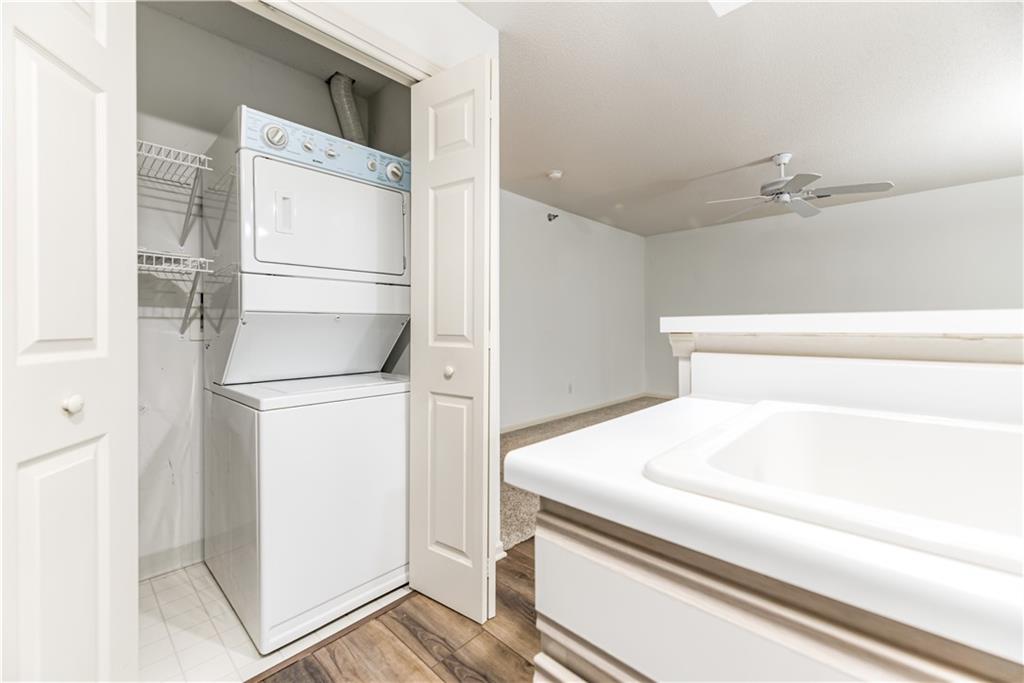 Move right into this affordable condo! The open-concept layout welcomes you with fresh paint, and durable vinyl plank flooring and carpet. The kitchen offers a convenient breakfast bar, and all appliances - including a stackable washer and dryer - are included. Both bedrooms are generously sized and feature walk-in closets and private bathrooms, and ideal for guests or roommates. Enjoy the large enclosed porch with a ceiling fan, storage closet and peaceful, tree-lined top floor views. Dedicated covered parking next to entrance, along with ample visitor parking. The professionally managed HOA takes care of water, sewer, trash removal, snow removal, lawn care and exterior maintenance and insurance. Conveniently close to shopping, dining, highways, the airport and downtown. Buy now and celebrate the holidays in your new condo!