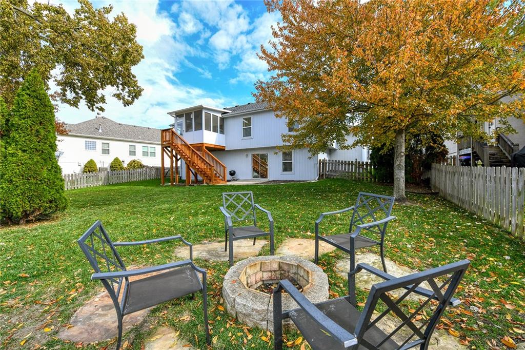 Pride of Ownership shows in this great updated HOME! Beautiful 4 bedroom, 3 bath, 3 car garage California split in sought-after Lee’s Summit School District with quick access to highway/shopping/groceries/etc. As soon as you enter the front door, you will fall in LOVE with the open floorplan and the beautiful updated fireplace/mantel in the vaulted great room. The bright kitchen is ready for holiday entertaining with a generous built-in pantry. The primary suite has a double vanity, private water closet, whirlpool tub, shower, and walk-in closet. The laundry is located off the bedrooms and renovated hall bath. The finished lower level has a 4th bedroom, bathroom, and family room that walks-out to the backyard. A big BONUS is the screened in deck (10X10) off the dining area. This one is a MUST SEE! This property has had so many updates - New trees SW corner of backyard & whole house surge protector in 2025 / Hall bathroom, kitchen plumbing, & stained deck in 2024 / Screened in new deck, fireplace, railings (wrought-iron), carpet (great room & stairs), paint (great room, kitchen, hallway, & laundry room), & shelving in laundry room in 2023 / Kitchen cabinets painted, Granite countertops, title backsplash, landscaping & firepit, & exterior of house painted in 2022. Look under supplements for a complete list of home improvements. Plenty of storage in the sub-basement and an extra closet (19.6x15.6) Patio (13.8X9.6) This one is PERFECT for comfortable living and convenience!!!