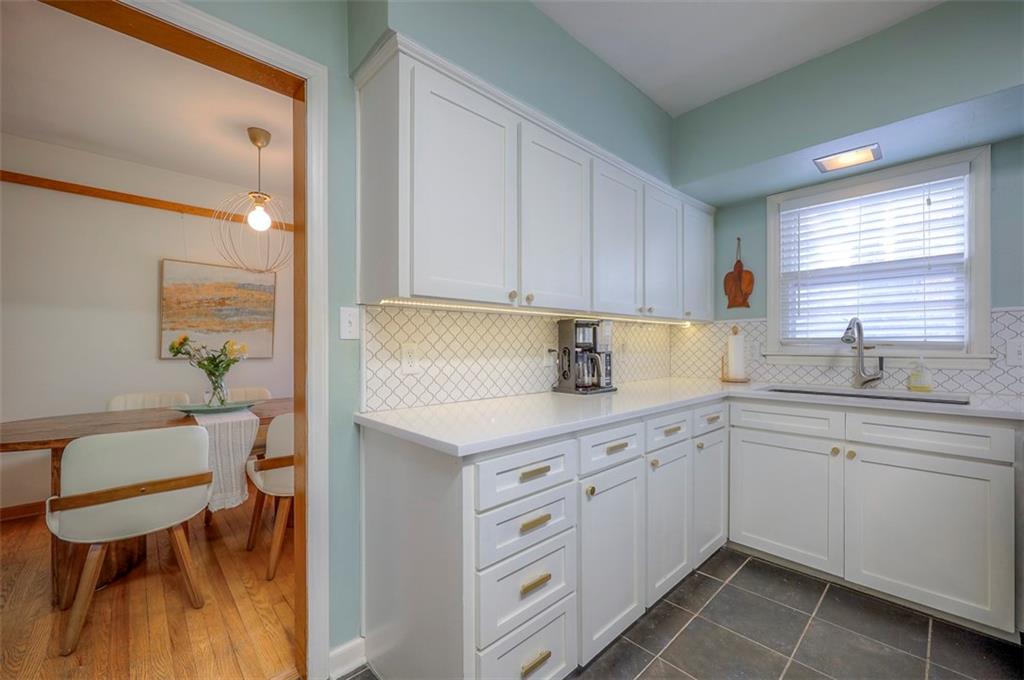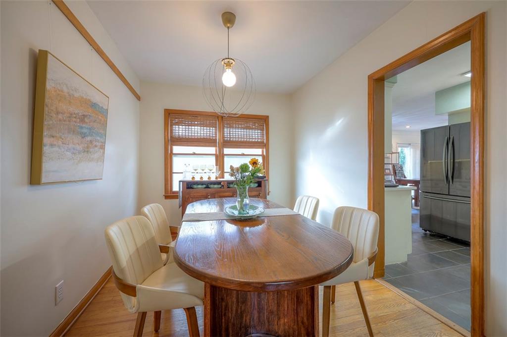 This home has had several updates by the current owner such as quartz counters in the kitchen and added a dishwasher and microwave and refrigerator that stays. The bathroom on the main floor has also been updated and the main floor has all wood floors throughout! The large sunroom with large windows off of the kitchen is a perfect gathering place in the summer or to watch snowing in the winter with a large slider opening to the fenced yard! The HV/AC was replaced just two years ago and the roof was replaced just eight years ago. The one car garage that faces the front has a double wide driveway for parking and on the side of the house there is another driveway that leads to the second garage. An oversize workshop is in the basement next to the garage entrance. The outside of the home does have some peeling paint and is being sold in that condition.