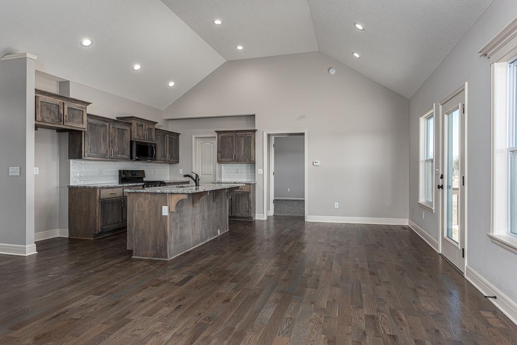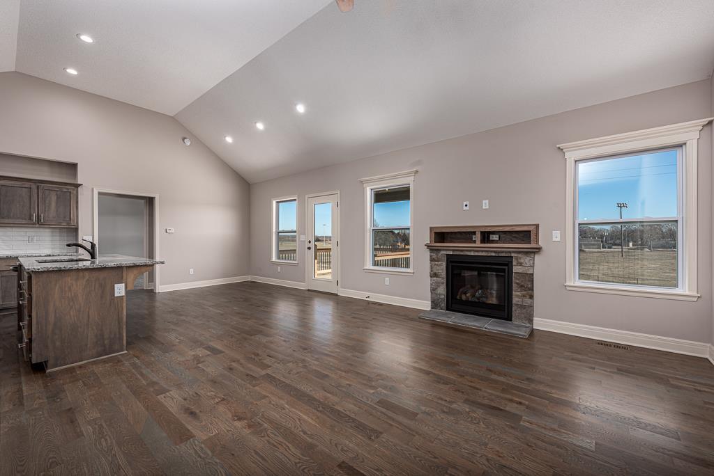BRAND NEW 3-BEDROOM RANCH WITH OPEN FLOOR PLAN AND 3-CAR GARAGE! If you’ve been searching for a stylish new construction home that blends comfort, quality, and function, this one checks every box. The Daniel Plan features hardwood floors throughout the kitchen, dining, and living areas, creating a warm and inviting feel. The kitchen is designed for modern living with granite counters, a walk-in pantry, and an open flow to the huge great room with a cozy fireplace—perfect for entertaining or quiet nights in. The spacious master suite offers a large walk-in closet and a beautiful bath with a custom corner shower. The unfinished basement provides endless potential for future expansion—think rec room, gym, or extra bedrooms. Enjoy peaceful views, a covered patio, and plenty of yard space for outdoor fun. Photos are of a similar model; taxes and room sizes are estimated. Seller is a licensed real estate agent in Kansas and Missouri.