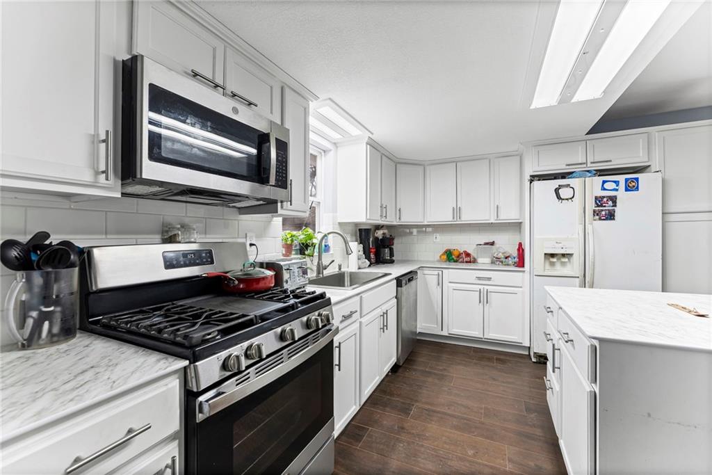 This beautifully updated 3-bedroom, 2-bath home offers comfort, character, and modern style throughout. The main level includes two spacious bedrooms and a bright, open living room filled with natural light. The fully updated kitchen features a large island, modern finishes, and an eat-in dining area perfect for wonderful meals or entertaining. Upstairs, you'll find a private suite that spans the entire floor with its own full bathroom—ideal for guests, a primary retreat, or a quiet workspace. Enjoy extra living space in the enclosed sunroom, or step outside to relax on the large covered deck or back patio. The big, flat backyard provides plenty of room to play, garden, or gather with friends. A detached garage offers convenient parking or additional storage, and the home sits on a quiet street in a welcoming neighborhood. This move-in-ready property is a wonderful place to call home!