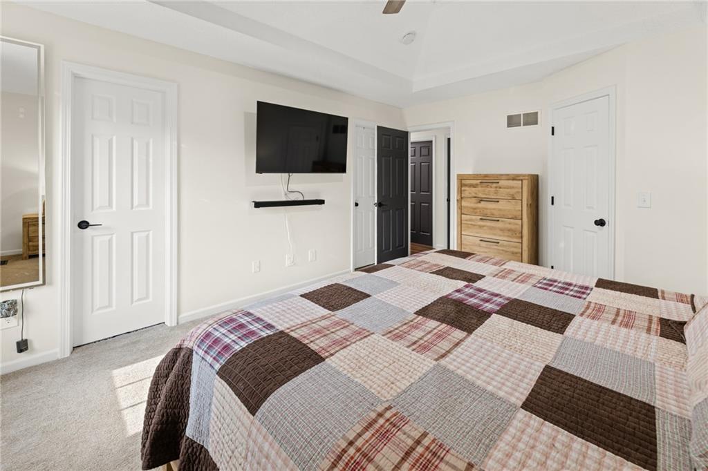 Welcome home to this beautifully updated property where comfort, style, and care are evident in every detail. Step inside and you’re greeted with fresh paint, modern touches, and a warm ambiance highlighted by the newly remodeled fireplace. The dining room features a stunning custom accent wall that instantly elevates the space. When you walk into the primary bedroom, you’re met with true luxury—two custom walk-in closets and a fully custom master bathroom designed for relaxation and convenience. Down the hall, two additional bedrooms feature brand-new carpet, while the kitchen shines with bamboo hardwood floors, quartz countertops, and a brand-new dishwasher. The upgrades continue throughout the home: laminated hardwood flooring in the hallway, barn doors in the laundry and basement, a smart thermostat, and thermal windows with one year warranty that fill the home with natural light. Head downstairs and enjoy the fully finished basement, plus a versatile sub-basement currently set up as a gym and cave room—perfect for hobbies, workouts, or extra storage. Step outside the home through French doors that lead to: a beautifully remodeled deck, a new shed, and a vibrant garden featuring four raised beds for fresh vegetables and fruit. Even the garage got a makeover with a epoxy floors, great during winter. This home blends thoughtful upgrades with charm and practicality—move-in ready, beautifully styled, and waiting to welcome its next owner.