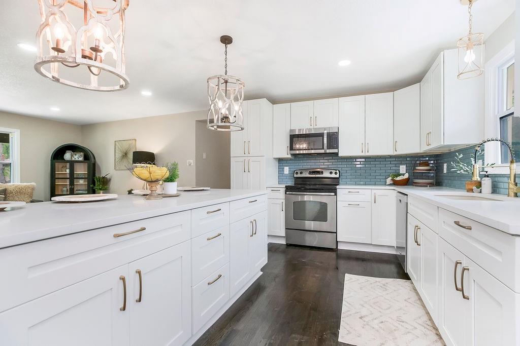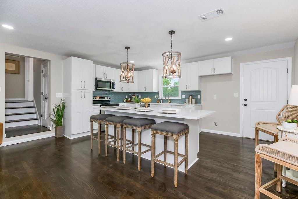 Stunning Fully Renovated Raised Ranch in a Quiet, Private Neighborhood! Welcome to this beautifully updated home nestled in a secluded, no-thru-street neighborhood, offering peace, privacy, and modern comfort. Step inside to discover gorgeous hardwood floors throughout every room, complemented by brand new windows, doors, lighting, and fresh paint inside and out. The open concept living room and kitchen is a true showstopper, featuring quartz countertops, stainless steel appliances, a massive center island, pantry, and endless cabinet space perfect for entertaining and everyday living. Enjoy two fully renovated, designer tiled bathrooms and a rare, flexible floorplan: the main level hosts a spacious primary suite, second bedroom, and full bath, while the upper level boasts three additional bedrooms, ideal for separate guest quarters, a home office, or multi-generational living. Incrdible Back Yard space for entertaining, gardening, fenced in for children or pets, options are endless!