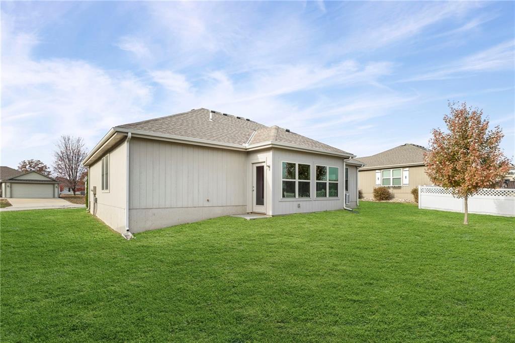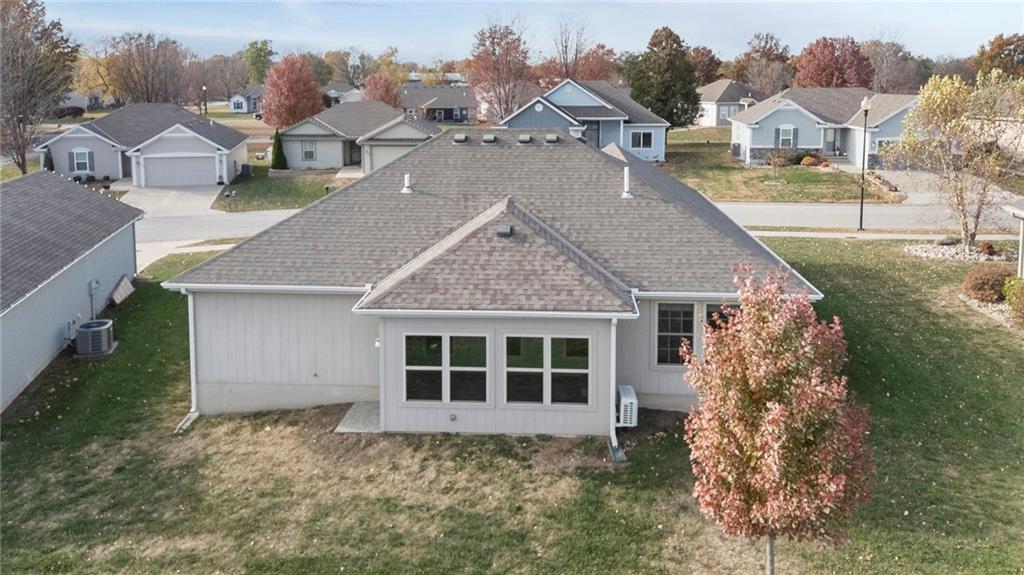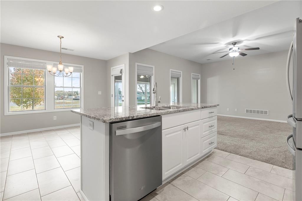 Better than new & in great shape! This home has beautiful granite in the kitchen & both bathrooms. The kitchen has a pantry, an island & stainless steel appliances. It is open to the dining area and the living room for an open feel. The kitchen walks out to a nice 4 season sunroom. In the primary suite you will find custom barn door window coverings, double vanity & walk-in closet. Carefree living in this maintenance free 55+ community. Low HOA fee covers lawn maintenance, snow removal, clubhouse & trails. One level ranch! 2 bd, 2 full baths, 2 car garage. Move in ready!