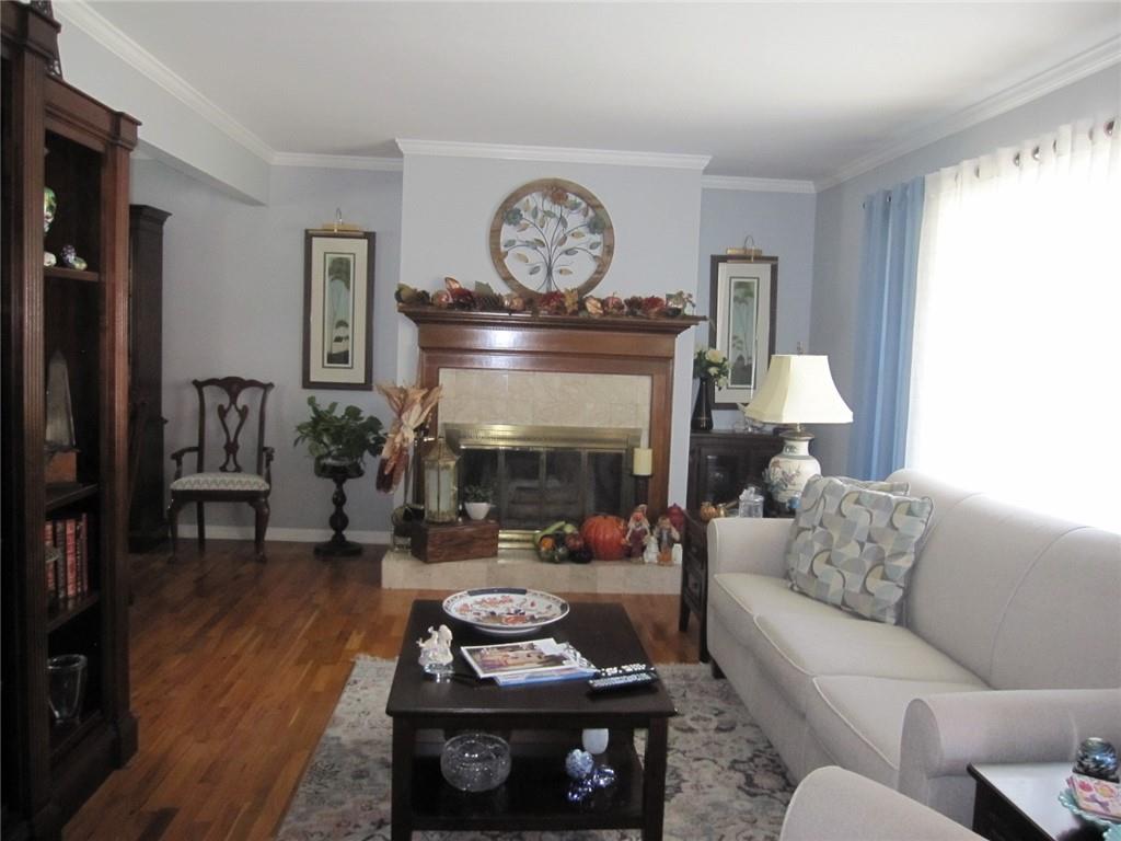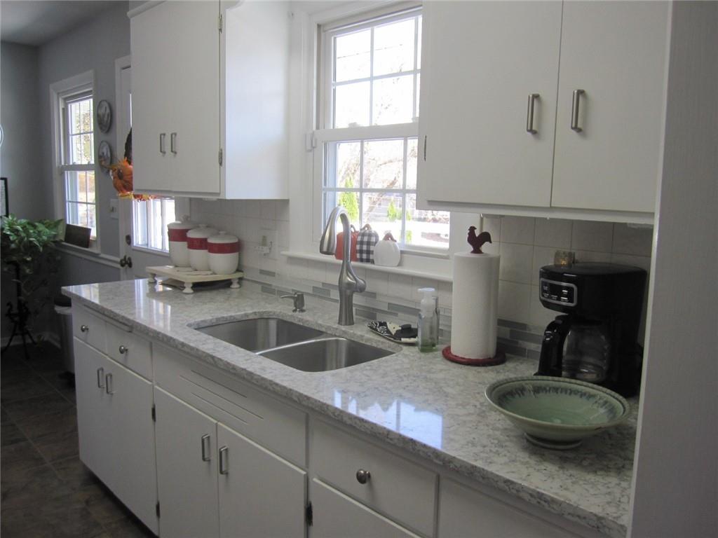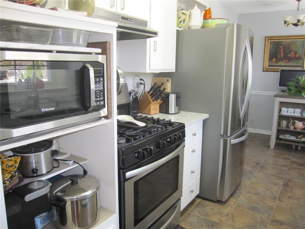 Sitting on a corner lot of a quiet dead end street, this beautifully decorated home is move-in ready. There are amazing hardwood floors throughout, and a wood-burning fireplace with a mantel. There is a formal dining room adjacent to the eat-in Kitchen which features granite counters, stainless appliances: Refrigerator, microwave, and gas range that stay. Washer/dryer, water softener also included. Large closets, tons of storage, and a finished walk-out basement onto the patio. Large deck off kitchen. Large yard sits on over 1/3 of an acre. In addition, the home has maintenance free siding, wrapped soffits and thermal windows. Don't miss out on this charming home!