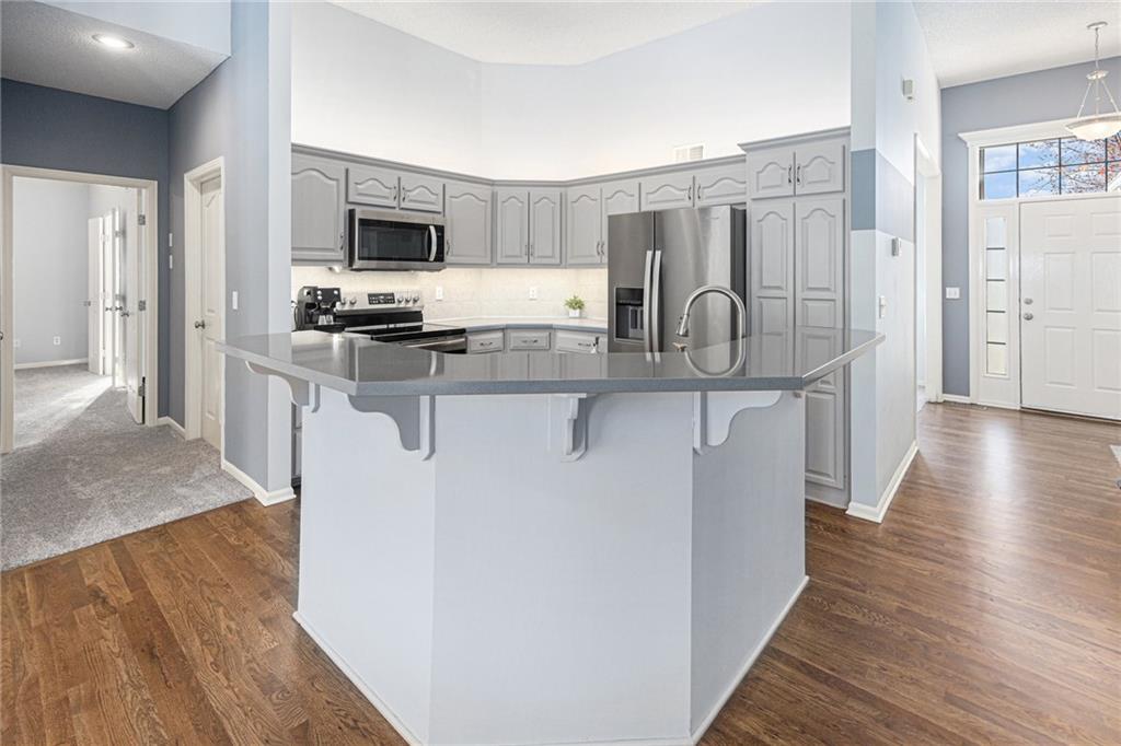 Welcome to this beautifully maintained 3-bedroom, 2-bathroom ranch nestled in the highly sought-after Platte City School District. This turnkey home features a bright and updated kitchen with stainless steel appliances, painted cabinetry, and ample counter space—perfect for everyday cooking or hosting family and friends. The main level offers refinished hardwood floors and new, plush carpet, creating a warm and inviting atmosphere. A spacious Great room with large windows brings in natural light and offers serene views of the mature trees surrounding the property. Cozy up by the fireplace or enjoy the flexibility of the bonus room, ideal for a formal dining space, home office, playroom, or personal library. Step outside onto the Large deck, perfectly positioned to overlook the peaceful, tree-lined lot—an ideal spot for morning coffee or evening relaxation. A walk-out, unfinished basement provides exceptional versatility—ideal for storage now and perfectly positioned for a future custom finish, complete with bathroom stub-in. With main-level bedrooms, thoughtful updates, newer a/c & roof and a quiet setting, this home is truly move-in ready. Easy access to Line Creek Trail: over 8 miles of paved trails through the woods and waterfalls of suburban Platte County. Don’t miss your chance to make it yours! Buyers' Agent responsible for verifying all information, including but not limited to sq ft, schools, taxes, room count, HOA, etc.