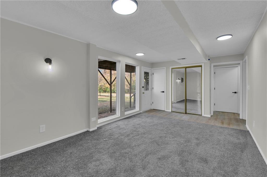 Beautifully remodeled three level home with vaulted ceilings, kitchen and dining room views, fireplace, walk out lower-level rec room, room for fourth bedroom below, deck with unobstructed views, rural feel, city close in desirable Indian Creek Subdivision in the heart of Lee’s Summit. Step inside to soaring vaulted ceilings that open up the main living space, highlighted by a stunning fireplace and accent wall that brings warmth and character. The kitchen and dining room overlook the main level, offering great sightlines and natural light. The updated kitchen features white painted cabinets, quartz countertops, a spacious island, and all-new fixtures that tie the modern look together. The home shines with fresh interior and exterior paint and many brand-new windows, bringing in great natural light while boosting energy efficiency and curb appeal. With two finished lower levels, you have flexible space for a home office, gym, or a fourth non-conforming bedroom. The lower-level rec room opens directly to the huge, fenced backyard—complete with gorgeous mature maple trees and even a pear tree that produces fruit. A great city-maintained green space with paved walking path and city park are right out the backyard! Additional upgrades include new plush carpet with premium pad, luxury vinyl plank tile in the kitchen and bathrooms, and fresh finishes throughout. Enjoy outdoor living on the oversized deck with unobstructed views or step straight out from your yard to enjoy the city park and walking trail. This one has the updates you want, the space you need, and a location you will love. Make it yours today.