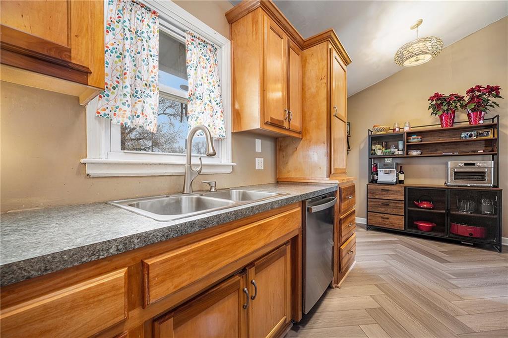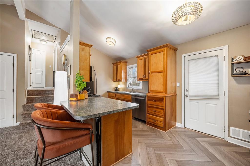 Welcome home to this cozy side-to-side split tucked into a convenient pocket of northwest Kansas City. With 3 bedrooms, 1.5 baths, and a finished walk-out basement, this home offers great function and flexibility for a buyer looking for comfort, charm, and a great location. Step inside to vaulted ceilings in the living room and kitchen, giving the main level an open and airy feel. Natural light fills the space, and the layout makes everyday living easy. The full bathroom has been fully remodeled with fresh, modern finishes, and the AC is only 3 years old, giving you added peace of mind. The finished basement provides extra living space for a second family room, home office, or hobby area. Walk right out to the backyard from here and enjoy a good-sized yard that’s perfect for pets, gatherings, or future outdoor projects. The back deck is ideal for morning coffee or unwinding at the end of the day. Located in the highly rated Park Hill School District and just minutes from shopping, dining, and entertainment at Zona Rosa, this home blends comfort and convenience in one of the most accessible areas of Kansas City. Whether you're buying your first home or looking for a simple, well-cared-for space in a great location, this home is an excellent find.
