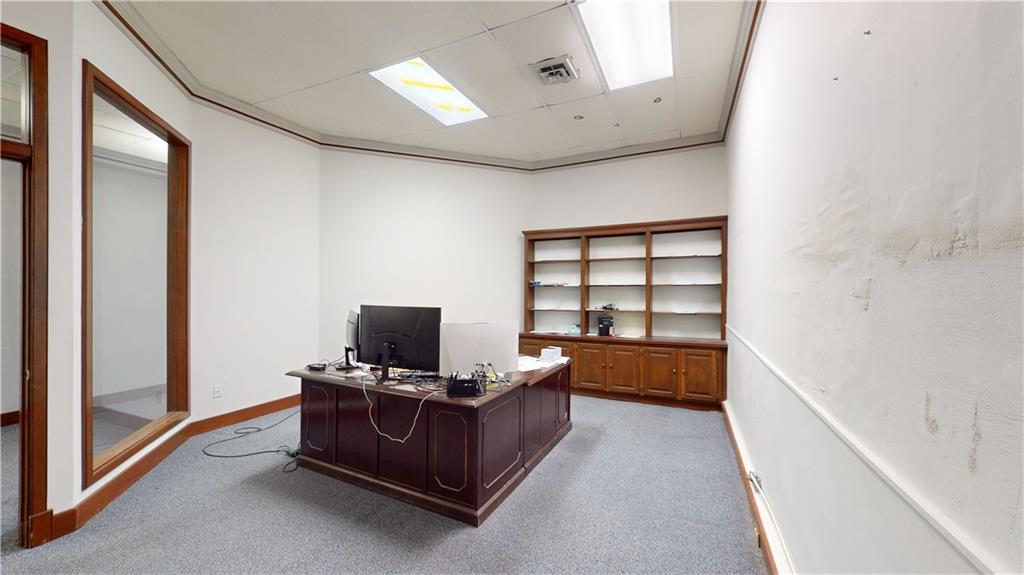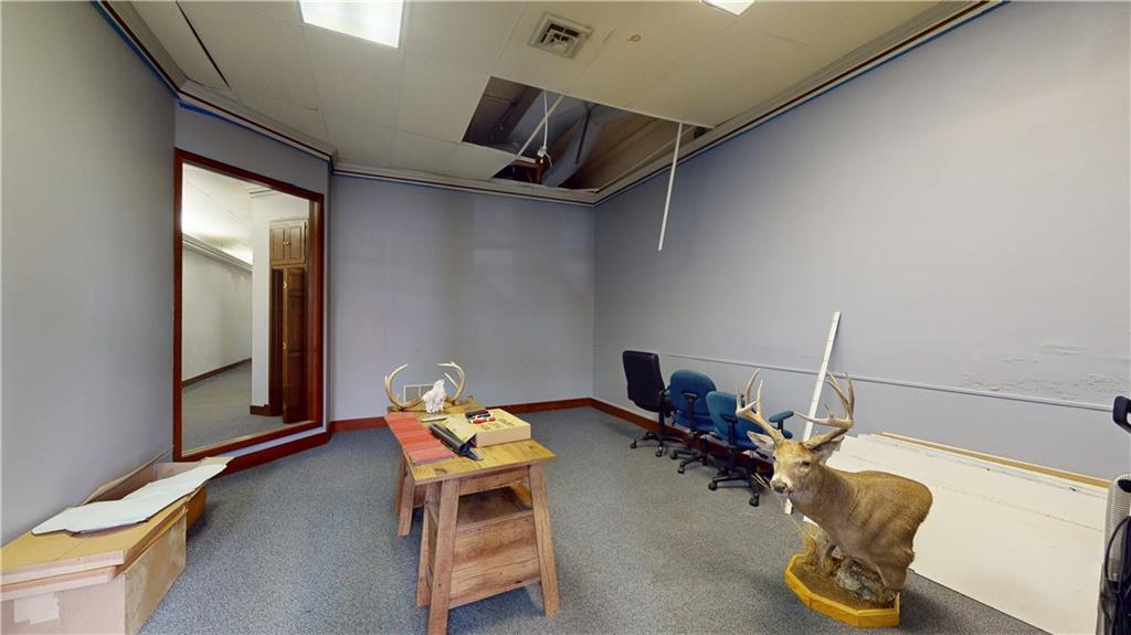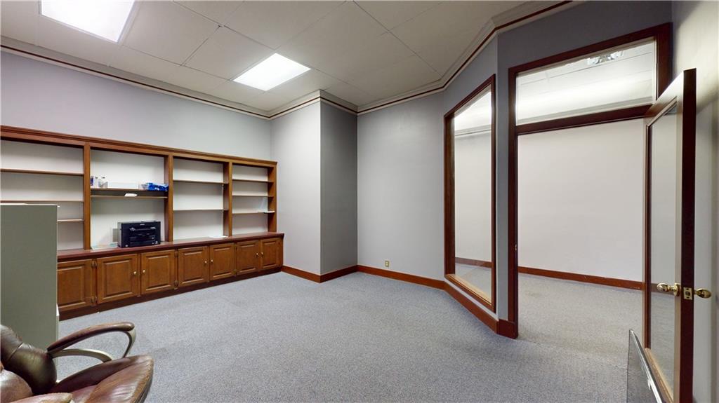 Opportunity awaits with this two-story, 3,300+ sq ft commercial building, boasting decades of history right in the heart of Nevada, MO's Downtown Square. Located just across the street from the Vernon County Courthouse, 123 N. Main offers exceptional potential for your thriving business or as a strategic investment property. The main level features over 1,800 sq ft of finished space, including a reception area, conference room, two large offices, storage, and two half baths. An incredible 1,247 sq ft Mezzanine provides ample storage to the west. A dedicated south staircase leads to the upstairs level, offering an additional 1,500 sq ft with a huge reception area and three additional offices. The property benefits from excellent natural light and is a must-see in a premium location!