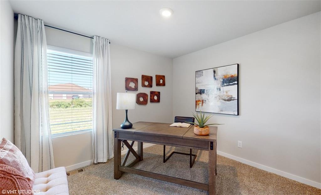 Welcome to Ella's Crossing, where modern design meets timeless elegance in this exceptional home crafted by D.R. Horton, “America’s Builder.” This residence greets you with a three-rail, two-panel insulated front door that enhances both curb appeal and energy efficiency. Step inside to find a beautifully appointed interior with 9-foot ceilings that exude sophistication. The chef’s kitchen is the heart of the home, featuring 36-inch painted maple cabinets, quartz countertops, and state-of-the-art Whirlpool® stainless steel appliances, all designed to make cooking a pleasure. Retreat to the spa-inspired bathrooms, where quartz-topped vanities, Moen® Chrome Faucets, and luxurious showers await. The primary bath offers a 5-foot shower with a framed glass enclosure, ensuring your daily routines are indulgent experiences. This home is designed for the future with advanced Smart Home technology, including a Honeywell® Pro Z-Wave® Thermostat, Amazon Echo, and a connected home panel, allowing you to control and monitor your home from anywhere. Energy efficiency is prioritized with LED lighting throughout, a high-efficiency gas furnace, and insulated low E vinyl windows, ensuring comfort and savings year-round. Additional features such as luxury vinyl plank flooring, a spacious garage with opener(s), and detailed wiring solutions like dual data/TV lines in the main bedroom and family room, enhance both convenience and style. D.R. Horton’s commitment to quality is evident in every aspect of this home, offering you a place where luxury, technology, and comfort come together seamlessly. Don’t miss your chance to own this extraordinary home in Ella's Crossing. Schedule your private tour today and experience the D.R. Horton difference!