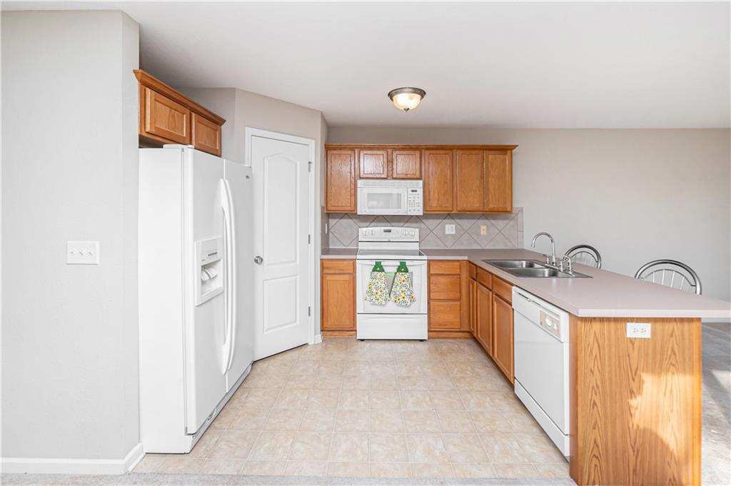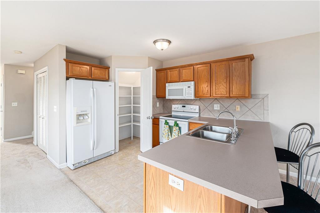 Location, location, and PRICE! Don't miss this fabulous, maintenance-provided 3-bedroom, 2.5-bath townhouse perfectly positioned on a desirable corner lot with a one-car garage. Step inside to a welcoming main floor featuring a convenient half bath and an open-concept kitchen, dining, and living room. The kitchen offers a walk-in pantry, bartop seating for four, and includes all appliances,dishwasher, stove, refrigerator, and microwave,that remain with the home at closing. The living room is light and inviting with neutral paint, a ceiling fan, gas fireplace, and a slider leading to the private patio, ideal for relaxing or entertaining. Upstairs, you'll find all three bedrooms. The spacious primary suite showcases a tray ceiling, new carpet, tray ceiling and ceiling fan. The ensuite bath offers both a jetted tub and a separate shower. Two additional bedrooms, a second full bathroom, and a dedicated laundry room (washer and dryer stay!) complete the upper level. Major updates add peace of mind, including a new roof, new hot water heater, and new A/C. Situated just off 152 Highway and North Oak, with quick access to 435, 169, and I-35, this home offers unbeatable convenience for commuting, shopping, dining, and more.
