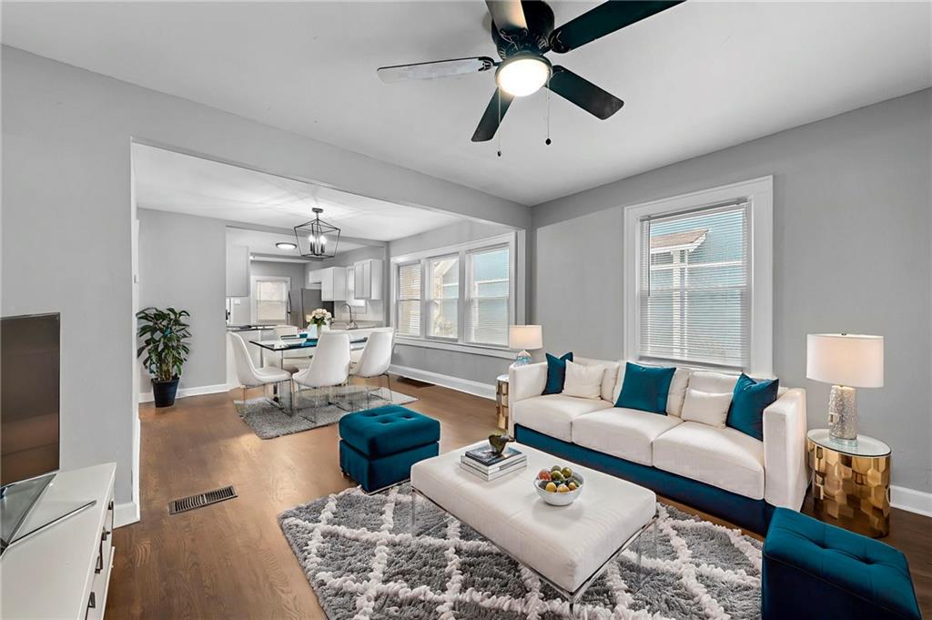 Run don't walk, to come and view this Beautifully renovated home featuring 4 bedrooms, 2 bathrooms, large back yard, and unfinished basement, located near the prestige Research Medical Center district! This open home concept offers you a cozy space to entertain in the newly renovated Living area. This home is featuring a Beautiful bright kitchen with White cabinetry , stainless steel appliances, and an eat-in dining area. Step outside and enjoy your evening with a hot or cold drink on a spacious front porch, and end your day in the Private primary bedroom located on its own private level fully equipped with a double vanity, bathtub/shower, a spacious walk in closet, additional bonus closet, and new windows wrapping around the bedroom to invite lighting all throughout the space during the day. Have a blast in the back yard BBQ'ing on the deck while overlooking friends and family in the yard. Additional upgrades Include: New windows, New interior exterior paint, new beautiful wood and LVP flooring throughout the home, new roof, and new gutters! Location, Location, Location! This home is located within 4 mins of the New Research medical center, 9 mins within the Kansas city plaza, 6 mins within Brookside area, 7 mins within the Kansas City Zoo and Aquarium, and within 11 mins within down town Kansas City! This home you absolutely don't want to miss! Visit and bring your offer!