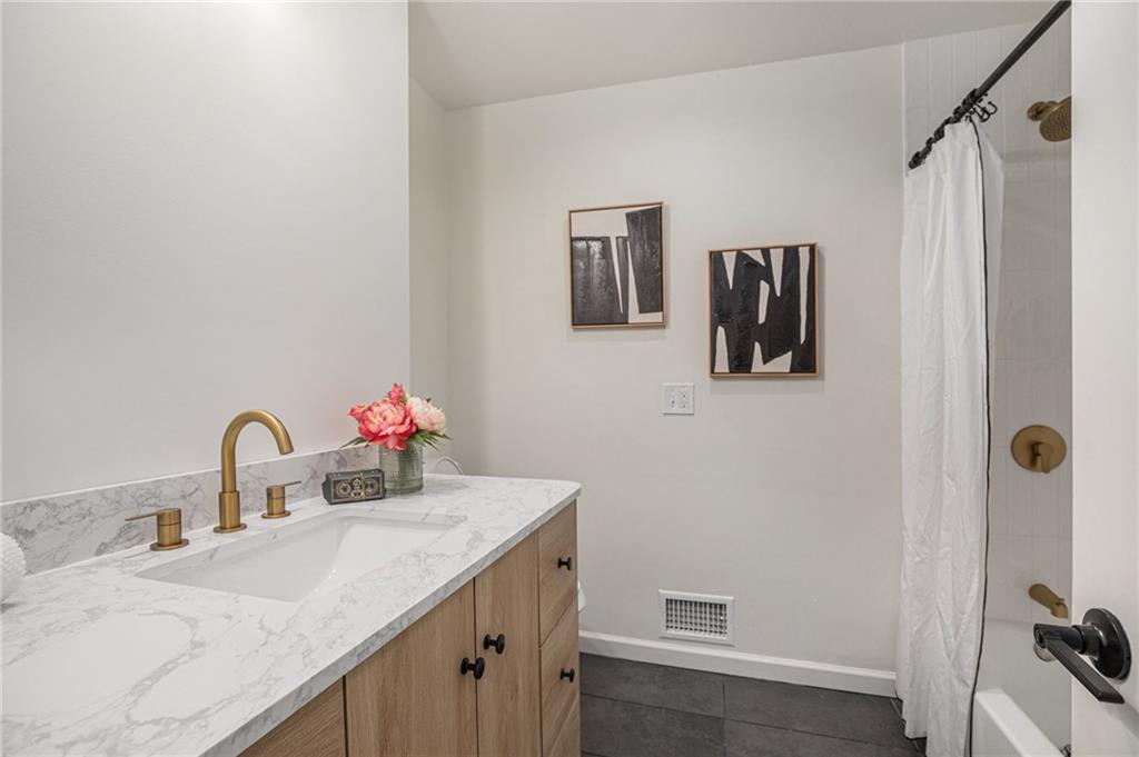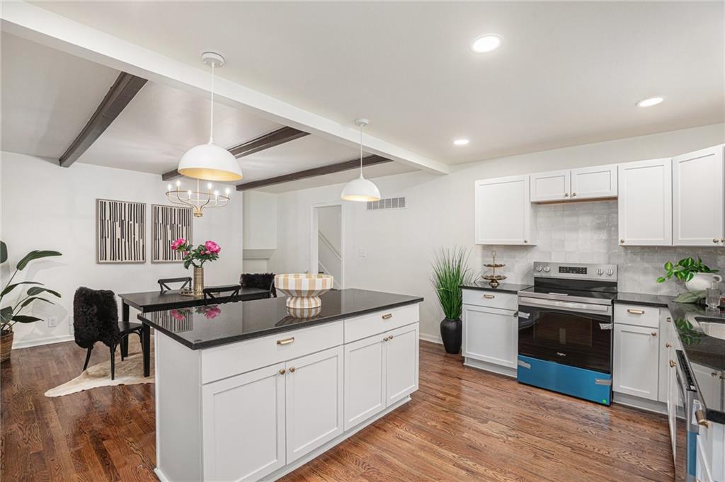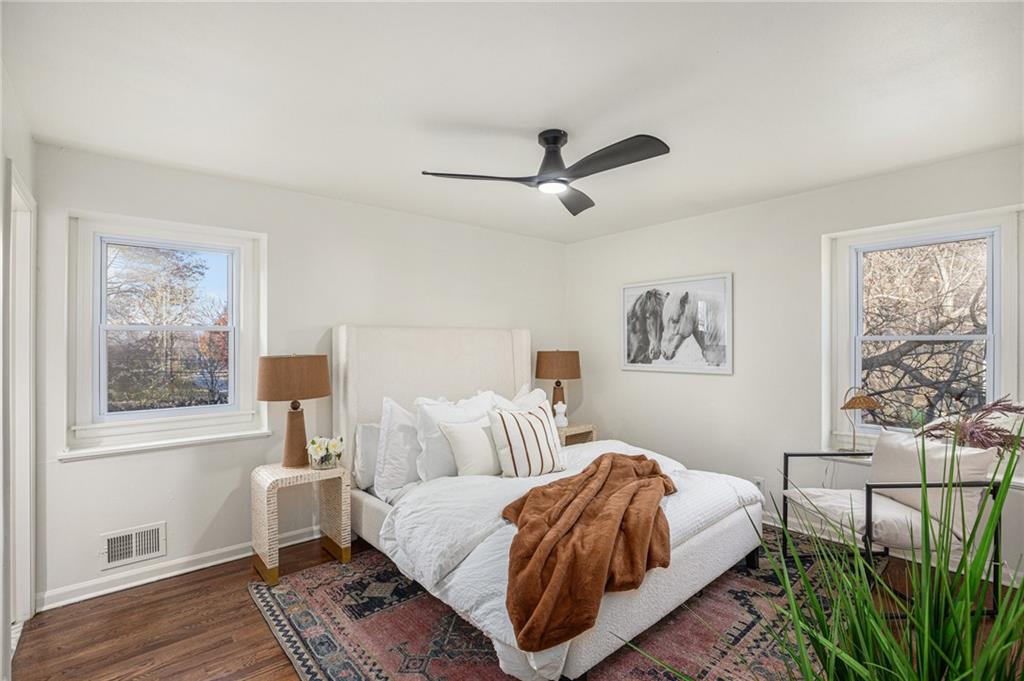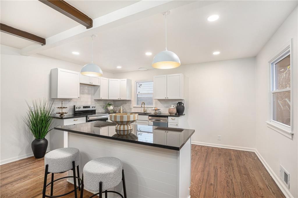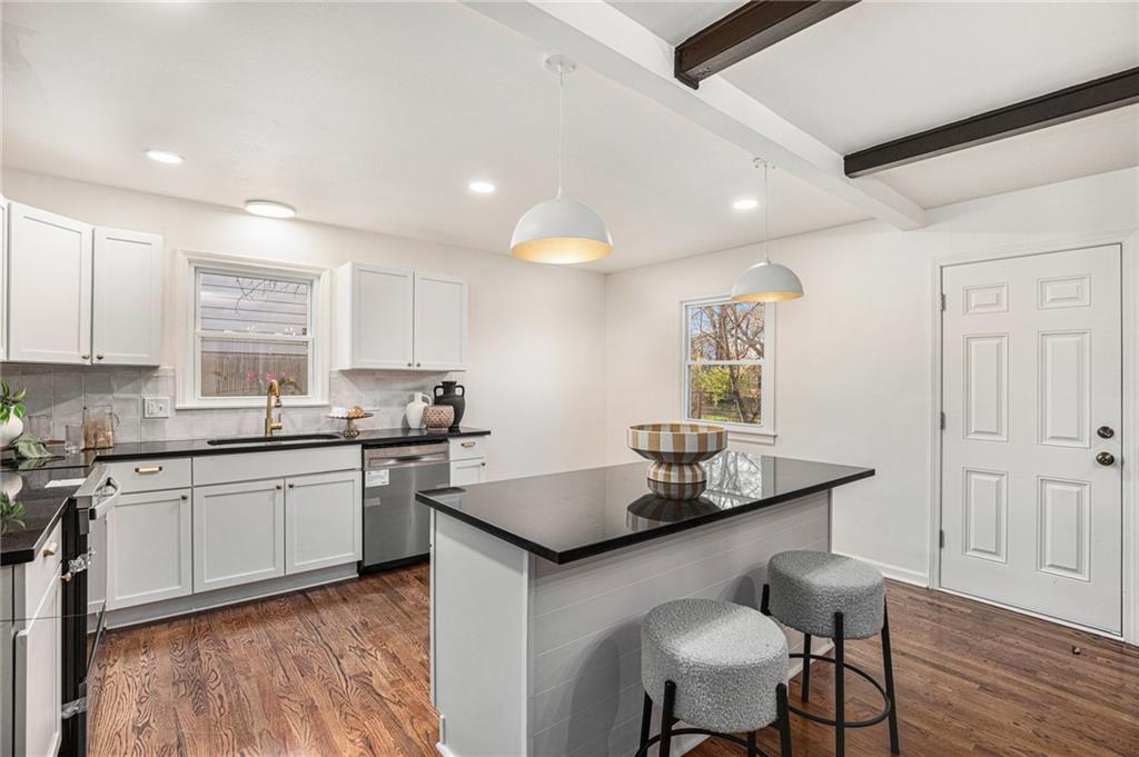 Stunning, turn key 3 bedroom 2 bath home situated on a huge corner lot with a fully fenced yard with a roof that's just 3 months old! Light and bright throughout, this home is filled with natural sunlight thanks to all new windows and an abundance of thoughtful openings. Enjoy beautiful flooring, modern fixtures, and stylish lighting that complement the open, airy layout. The open concept kitchen features a charming breakfast nook with a cozy fireplace, a bonus island offering generous workspace, and tons of cabinetry. Complete with stainless steel appliances, this space is perfect for cooking and gathering. Both bathrooms have been fully renovated with detailed tiling, new vanities, and decorative flooring for a fresh modern feel. A large unfinished basement provides excellent storage and is ready to be finished-enhanced by painted ceilings that give it a cool industrial vibe. Step outside to a large deck ideal for entertaining. Located minutes from schools, parks, shopping, and major highways, this home offers convenience and comfort in one perfect package.