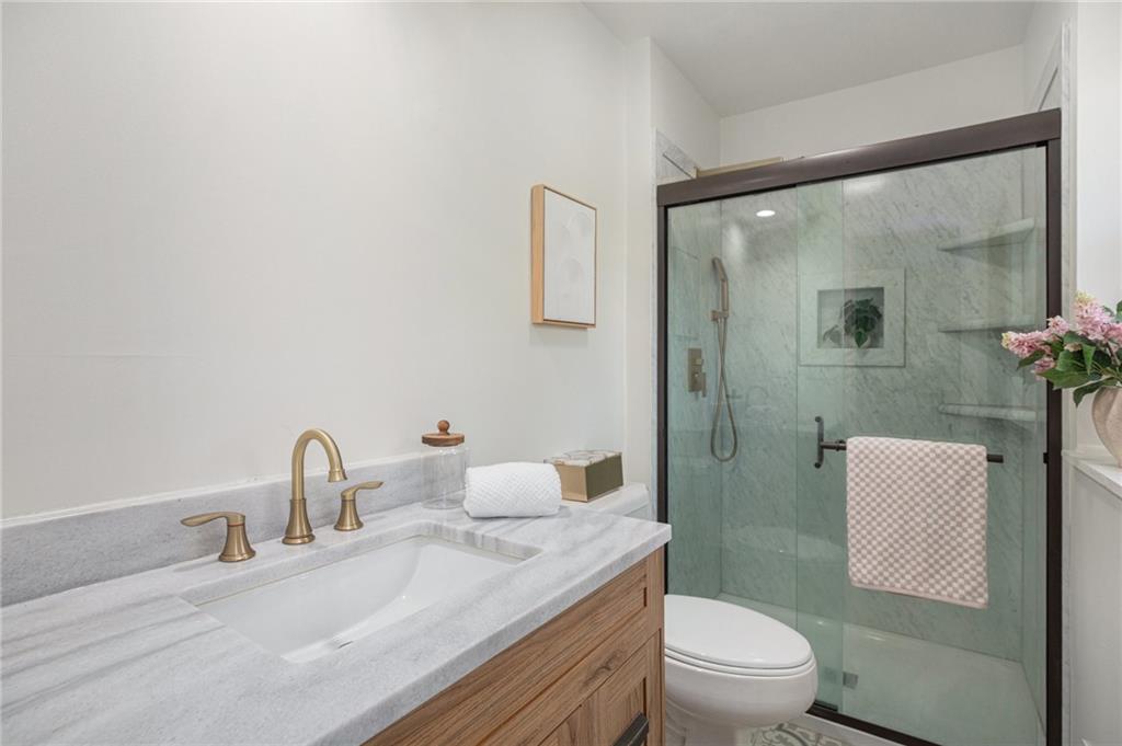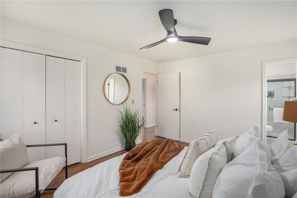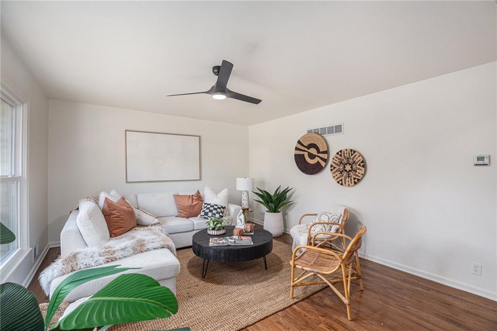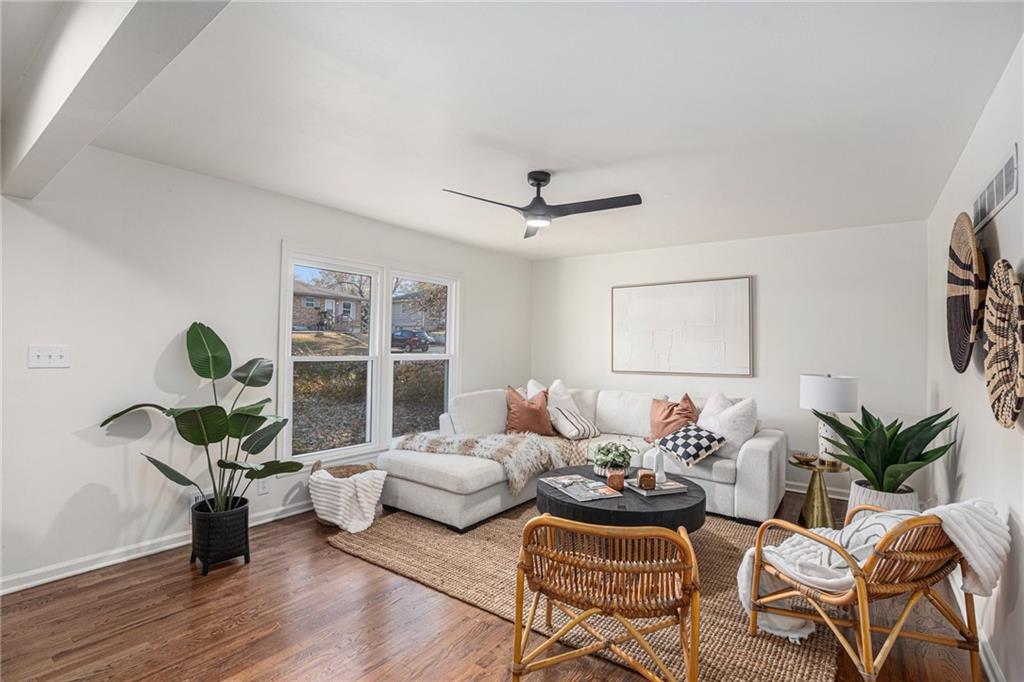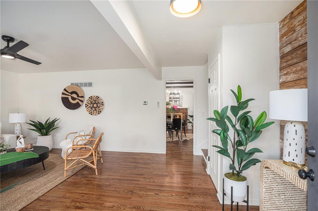 Stunning, turn key 3 bedroom 2 bath home situated on a huge corner lot with a fully fenced yard with a roof that's just 3 months old! Light and bright throughout, this home is filled with natural sunlight thanks to all new windows and an abundance of thoughtful openings. Enjoy beautiful flooring, modern fixtures, and stylish lighting that complement the open, airy layout. The open concept kitchen features a charming breakfast nook with a cozy fireplace, a bonus island offering generous workspace, and tons of cabinetry. Complete with stainless steel appliances, this space is perfect for cooking and gathering. Both bathrooms have been fully renovated with detailed tiling, new vanities, and decorative flooring for a fresh modern feel. A large unfinished basement provides excellent storage and is ready to be finished-enhanced by painted ceilings that give it a cool industrial vibe. Step outside to a large deck ideal for entertaining. Located minutes from schools, parks, shopping, and major highways, this home offers convenience and comfort in one perfect package.