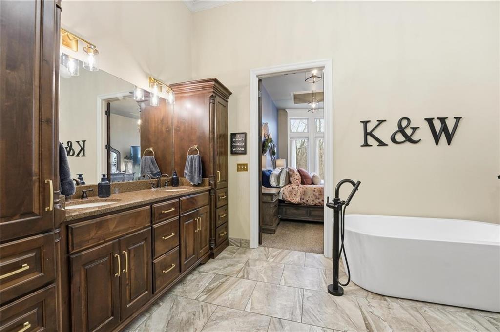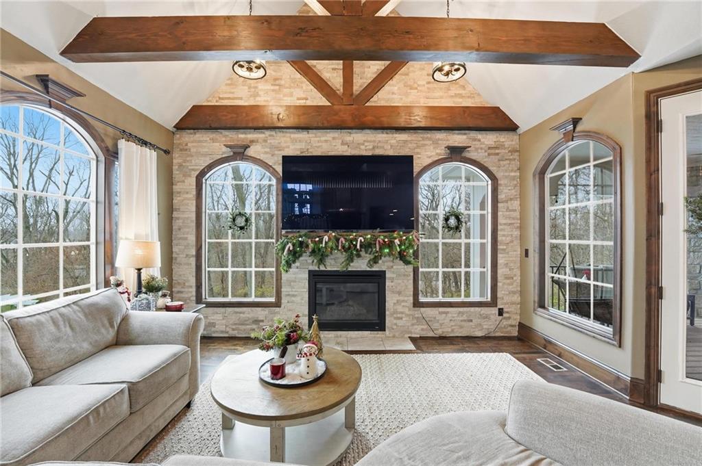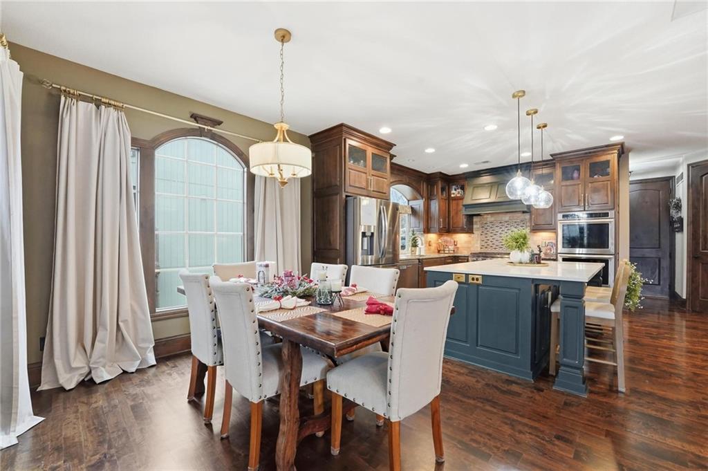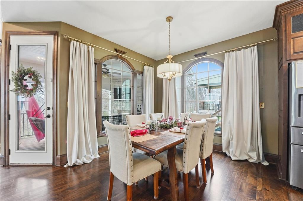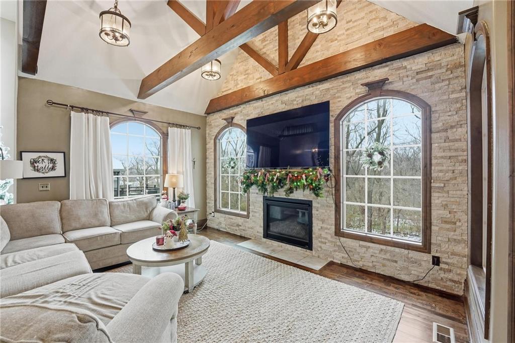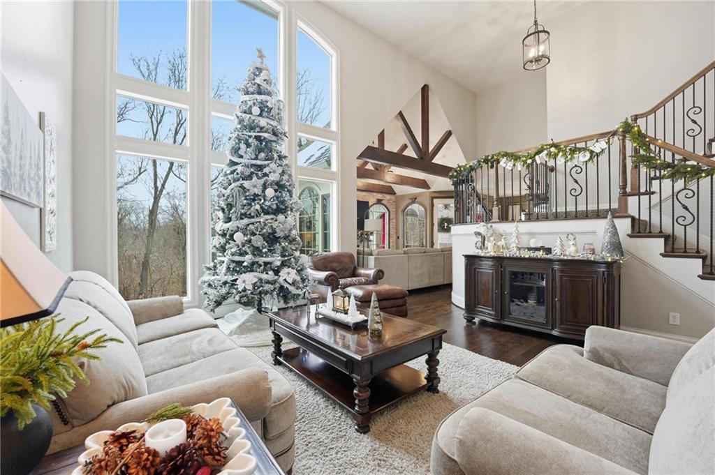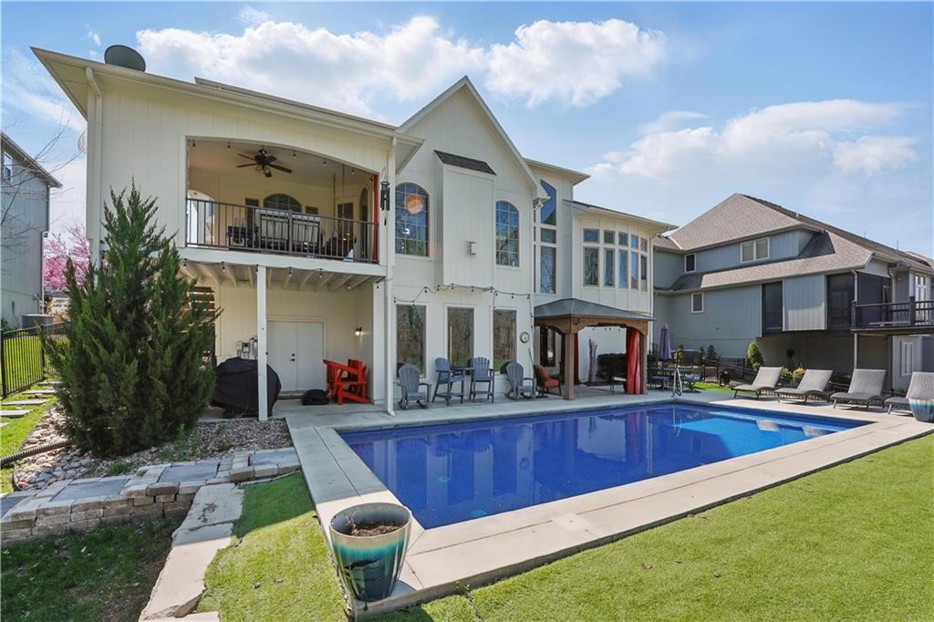 This gorgeous home delivers luxury living with a backyard that feels like a private resort. Even in the middle of winter, the pool looks like it’s just counting down the days until it becomes the star of the show. Picture sunshine, music and float filled afternoons coming soon, all framed by a beautifully kept yard and inviting outdoor spaces that make summer feel endless. Inside, soaring windows pull in natural light and highlight the wooded backdrop, giving the living areas an elevated and welcoming feel. Rich hardwood floors flow through the main level, connecting a spacious living room, elegant dining room and a beautiful kitchen with granite counters, walk in pantry, large island and an inviting eat in area. The hearth room adds another cozy gathering spot with its fireplace and treetop views. The primary suite brings comfort and style with a generous bedroom, walk in closet and a spa inspired bath with double sinks, soaking tub and a walk in shower. Upstairs bedrooms offer great space and storage with a Jack and Jill setup between two of them, plus a private full bath for the third. The walk out lower level is built for fun with a wide open rec room, dedicated TV room, bonus room and a wet bar that makes hosting easy. A covered patio overlooks the pool, the landscaping is beautifully maintained and the setting feels tucked away while still keeping you close to everything. This high end home blends luxury, comfort and a future summer that’s ready to shine.