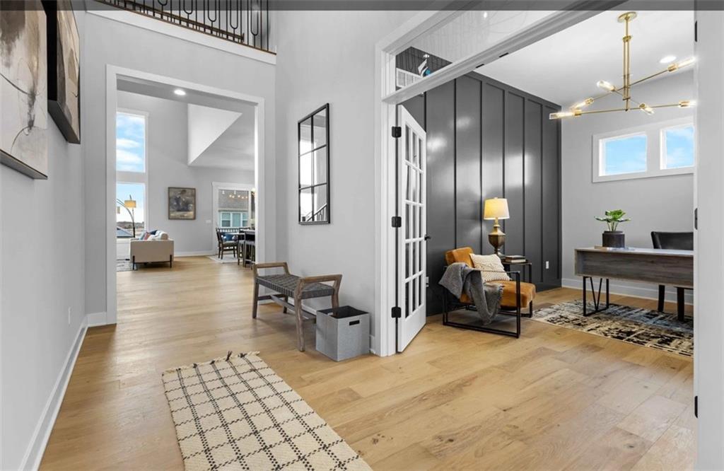 The Opus II by Inspired Homes sits beautifully on lot 73 in the highly desired Southern Meadows community. This exceptionally spacious home offers an impressive amount of square footage and is positioned on an oversized lot, giving you room to live, entertain, and grow. The 5-bedroom layout includes a convenient main-floor guest suite, perfect for visitors. A dedicated front office greets you upon entry, followed by an airy 2-story foyer filled with natural light. The soaring great room showcases an elegant fireplace design and a stunning wall of windows that capture views across the rear of the home. The designer kitchen is a true highlight, featuring quartz countertops, a massive island, abundant custom cabinetry, and a large walk-in pantry with prep sink. Upstairs, you’ll find four generous bedrooms, each offering excellent space, thoughtful furniture placement, and top-tier closets. The second-floor overlook provides fantastic views down into the dramatic great room. High-end finishes shine throughout the home. The expansive unfinished basement is ready for your future plans. Estimated completion: March/April 2026.