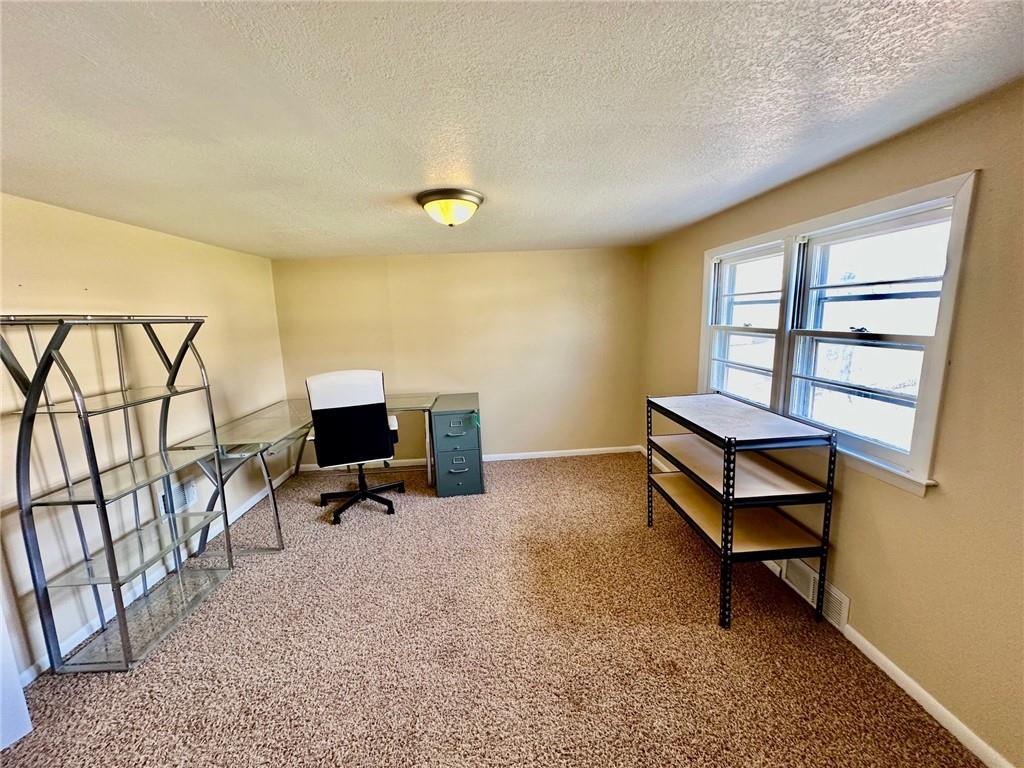 Whether you are looking for Homeownership or Investment Property, this could be for you! Checkout this Cute Bungalow on an Oversized Corner Lot! Ready for your personal touches! Large, fenced backyard with double decks and shed; lower deck has all new wood. Two bedrooms on the main level with a full bath that has been updated including a Toto bidet. The 3rd bedroom upstairs has an additional sitting room which could make a perfect office, playroom or craft area. Seller is leaving all appliances, including the refrigerator, washer, dryer, office furniture, and bookcase in living room. Kitchen/Dining combo has a deep Swanstone sink with an upgraded faucet. Air conditioner and furnace approx. two years old, water heater seven years old, and roof approx. 15 years old. Concrete basement could be finished for additional living space. Great Location with easy access to I-35 and 210 Hwy. Call today for your personal showing!