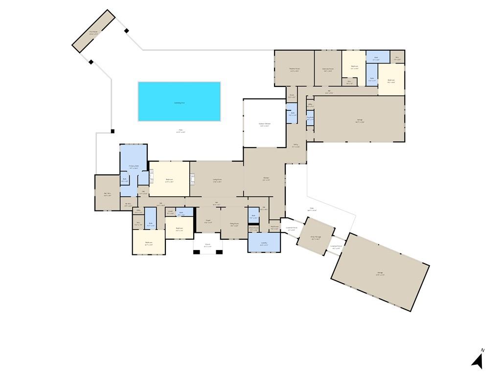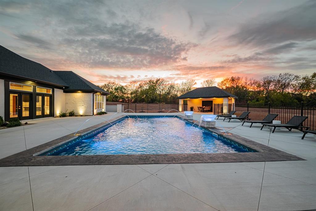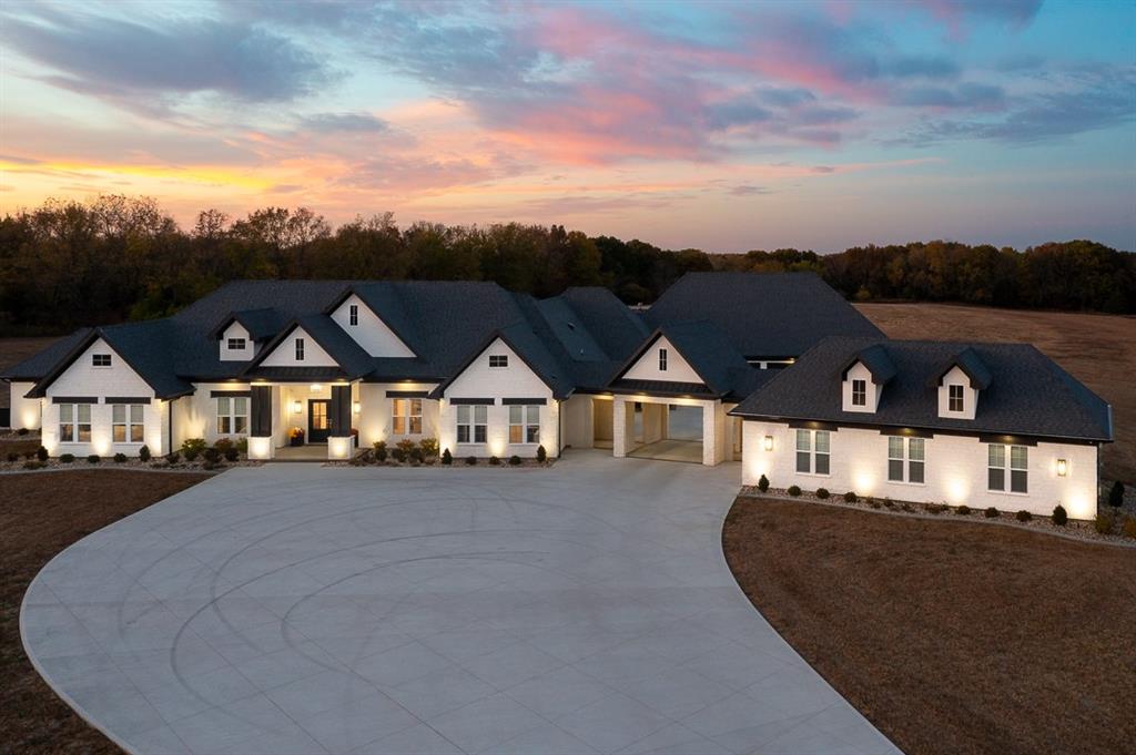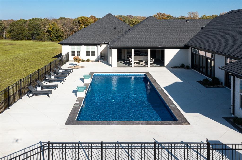 LUXURY 5-BED ESTATE ON 15 ACRES WITH MODERN AMENITIES & RESORT-STYLE LIVING! If you’ve been searching for a high-end home that blends wide-open space with top-tier comfort, this stunning 6,000+ sq ft single-level residence delivers it all. Set on 15 peaceful acres, this estate feels like your own private resort, offering room to breathe, play, and relax in total privacy while still staying close to everyday conveniences. Inside, you’ll find expansive living areas designed for both hosting and unwinding, a true gourmet kitchen with two large islands and a massive walk-in pantry, plus heated floors in every full bathroom for year-round comfort. The home is loaded with modern upgrades, including full home automation, motorized blinds, whole-house audio, custom inset bedroom lighting, two HVAC systems, and two on-demand water heaters. Movie nights are incredible in the dedicated home theater, and outdoor living shines with a covered outdoor kitchen overlooking the custom inground pool with lighted fountains. A separate pool house adds convenience for guests, and the oversized 1,100 sq ft 6-car attached garage gives you all the storage you’ll ever need. The 60x42 shop/barn is perfect for hobbies, equipment, or additional workspace. With 15 acres of beautiful land, this estate offers space, luxury, and a lifestyle that’s hard to match—all in a prime rural setting with great access to surrounding communities.