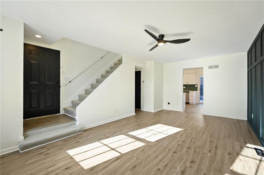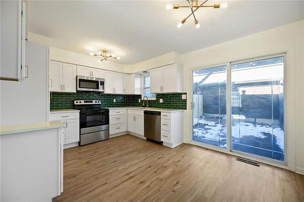 Welcome home to this stunningly refreshed 2-bed, 1.5-bath property offering modern style, thoughtful updates, and incredible convenience in a quiet, desirable community. Step inside to an open and inviting main level featuring all-new flooring, fresh paint, and great natural light. The fully updated kitchen is a showstopper—complete with white shaker cabinetry, sleek quartz countertops, stainless steel appliances, and a bold emerald green tile backsplash that adds the perfect touch of personality. Enjoy seamless access to the private back patio through oversized sliding doors, making indoor/outdoor living effortless. A beautifully remodeled half bath with modern fixtures completes the main floor. Upstairs, you’ll find two large bedrooms with generous closets and an updated full bathroom. The partially finished basement provides additional flexible living space—perfect for a home office, rec room, or workout area—plus extra storage. Major mechanical updates include brand-new HVAC, providing peace of mind for years to come. A rare find in this community, this home also includes a spacious 2-car garage! Enjoy low-maintenance living with an HOA that covers lawn care, exterior maintenance, and common area upkeep, giving you more time to relax and enjoy your home. This move-in ready home offers an incredible opportunity for easy, stylish living.